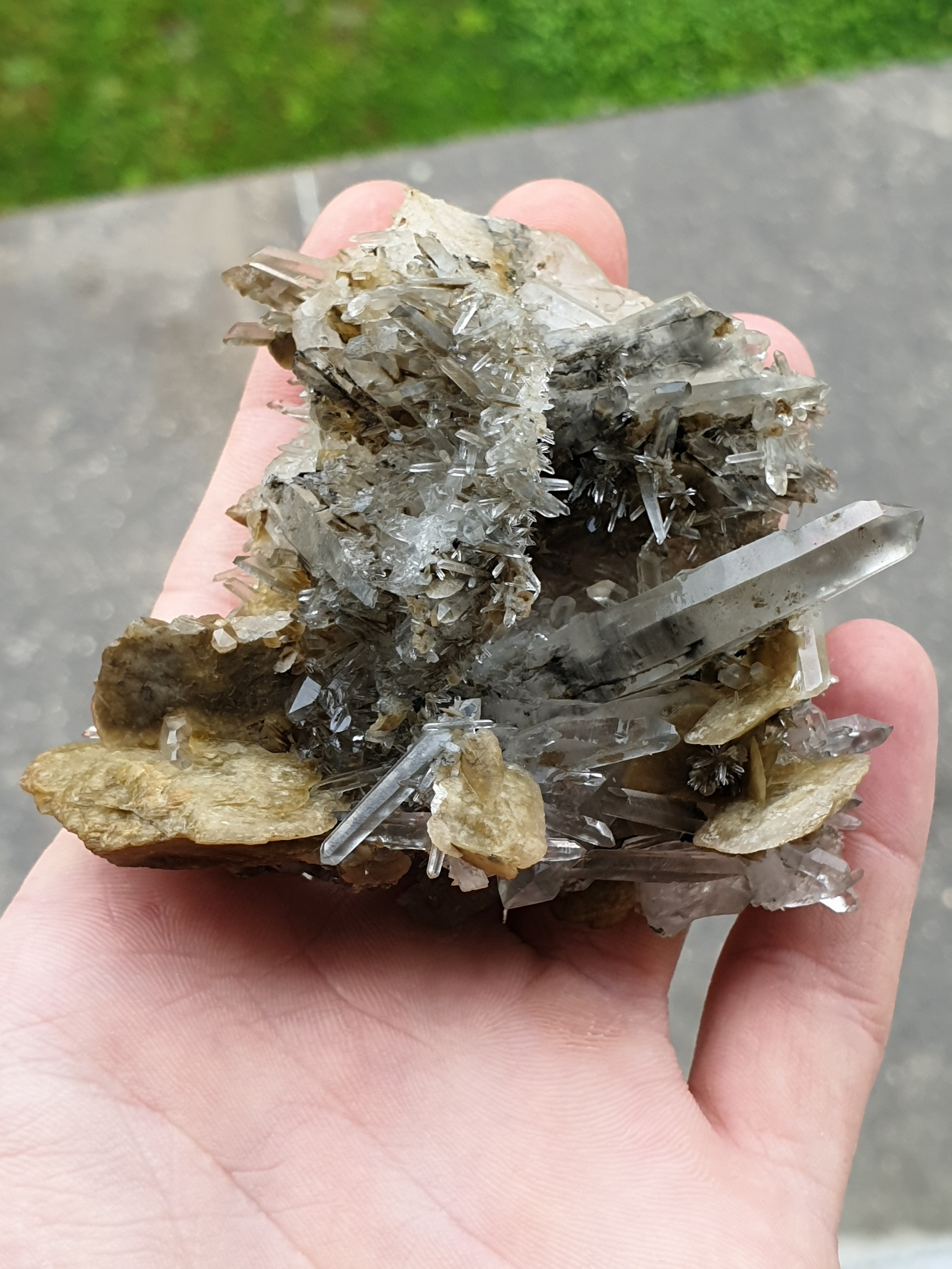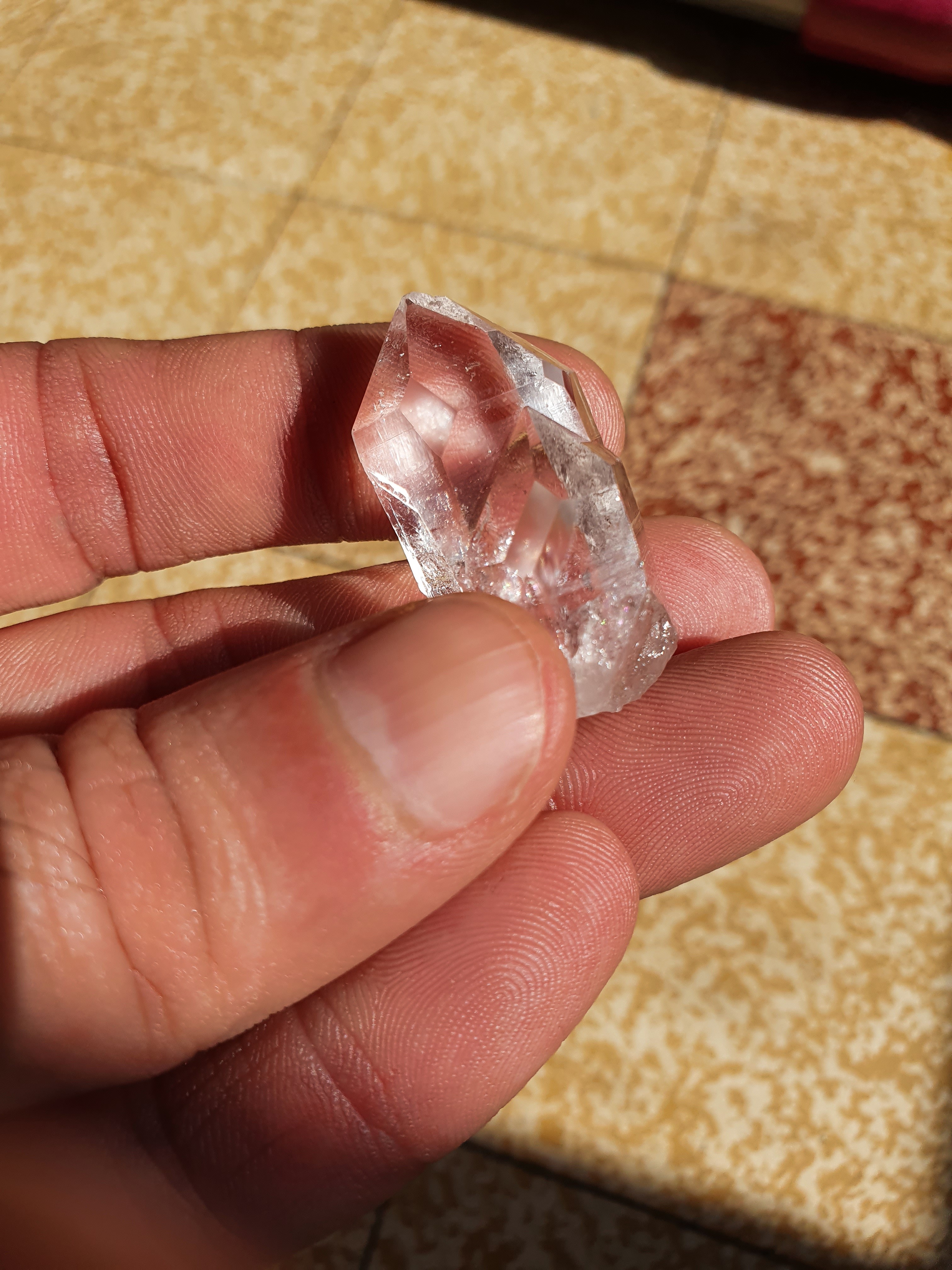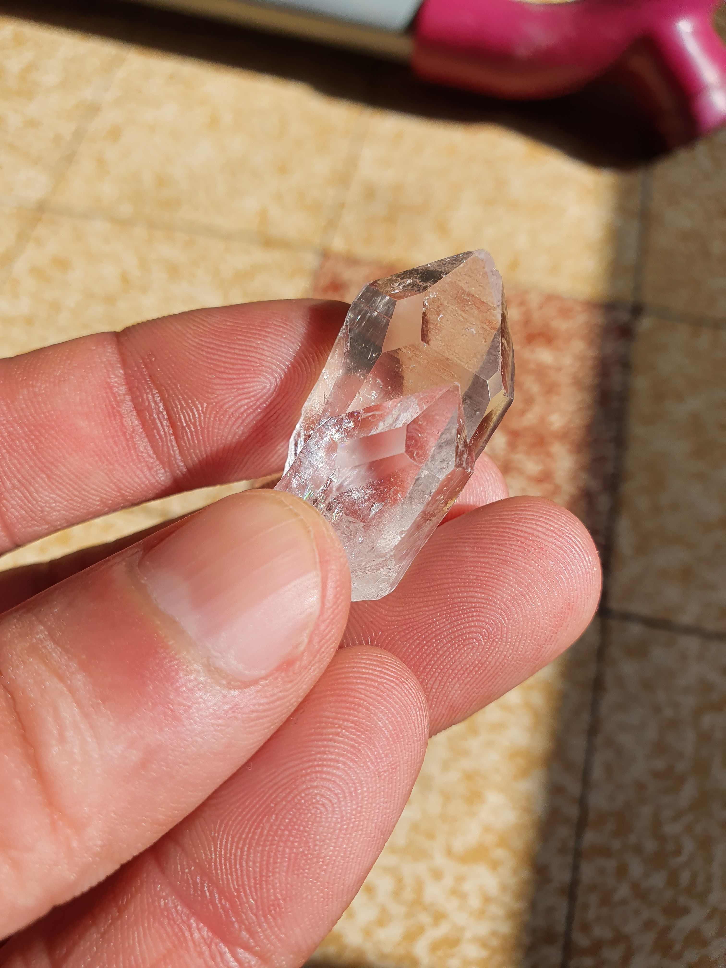Toujours le filon des rivoirands de Vizille. Quartz flottant bi terminé avec une terminaison sceptre d’un côté et une terminaison anti sceptre de l’autre.