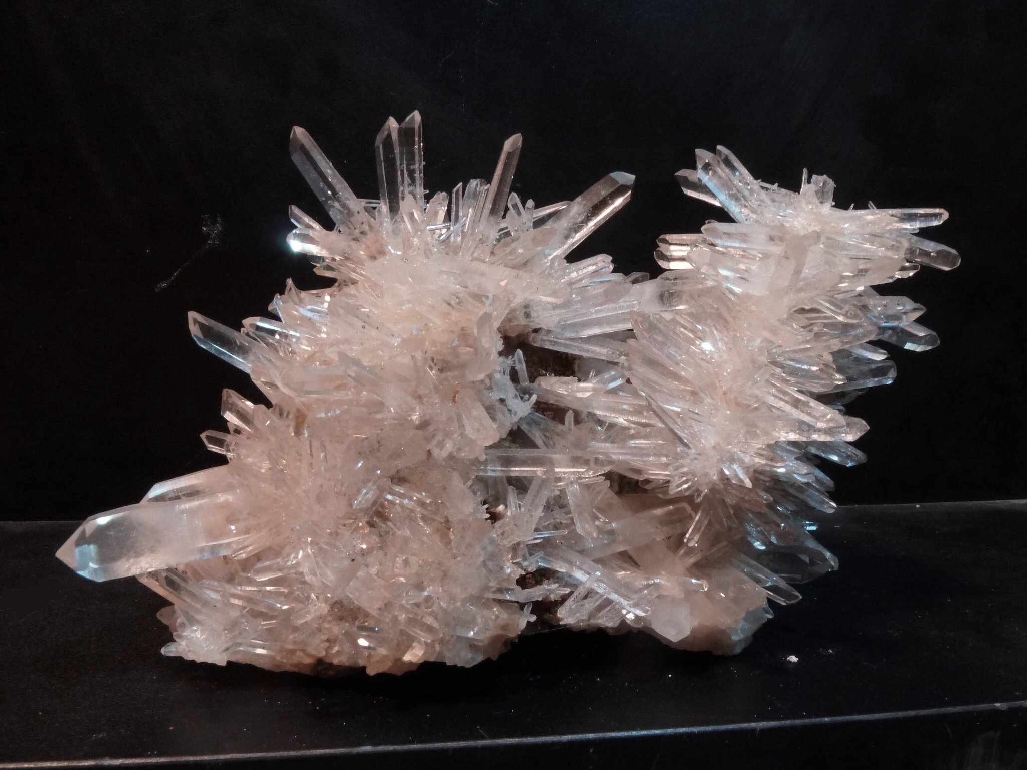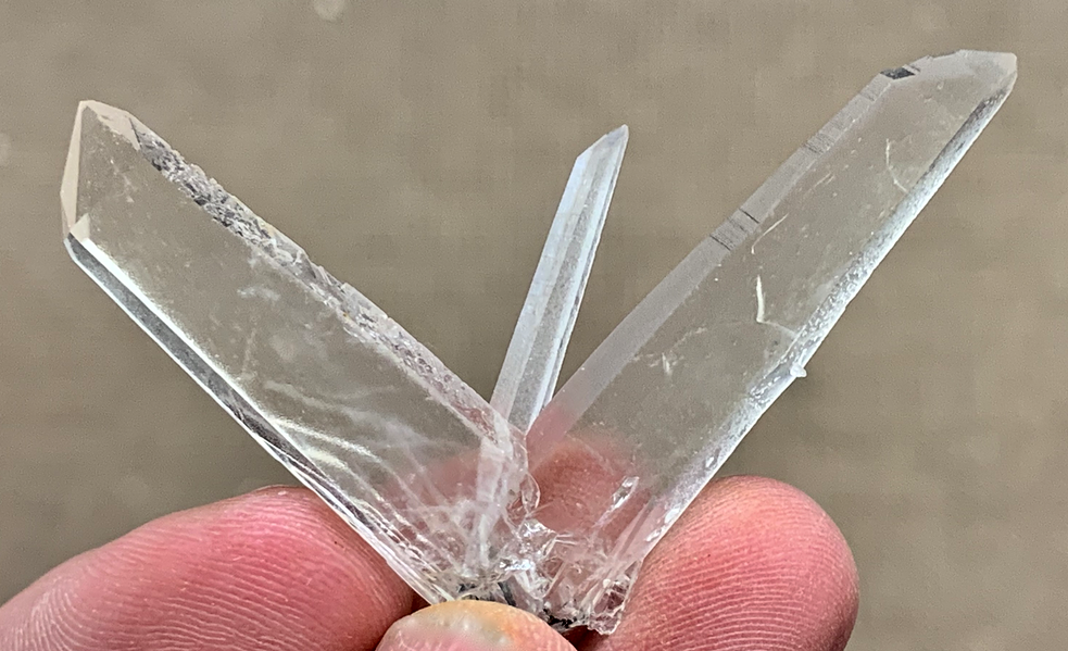 Quartz groupe de cristaux habitus dauphiné sceptrés (avec une toute petite pointe de mauve) [55mm]