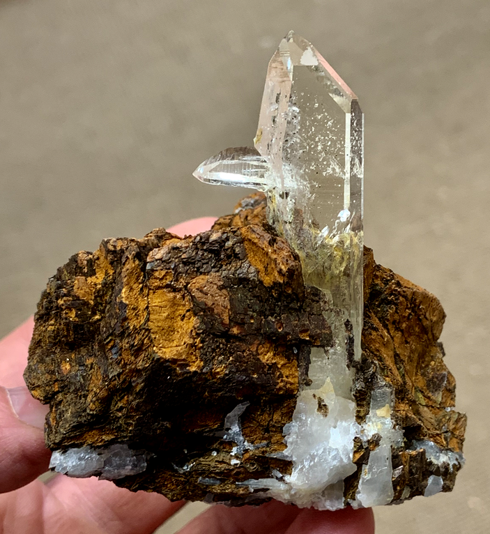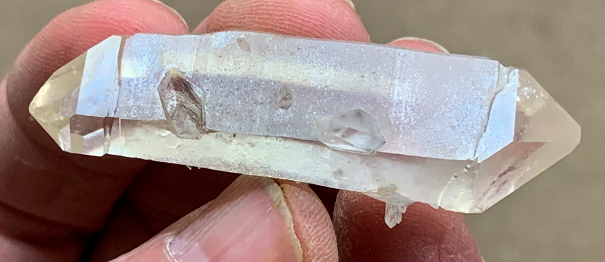 Quartz dauphiné, macle de La Gardette, sceptrée (trés trés discrètement violacée). [70mm]