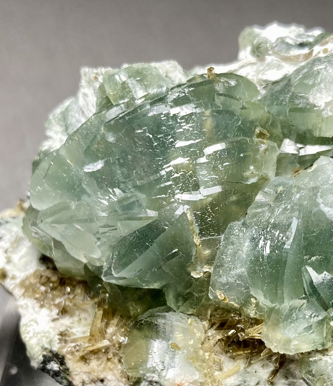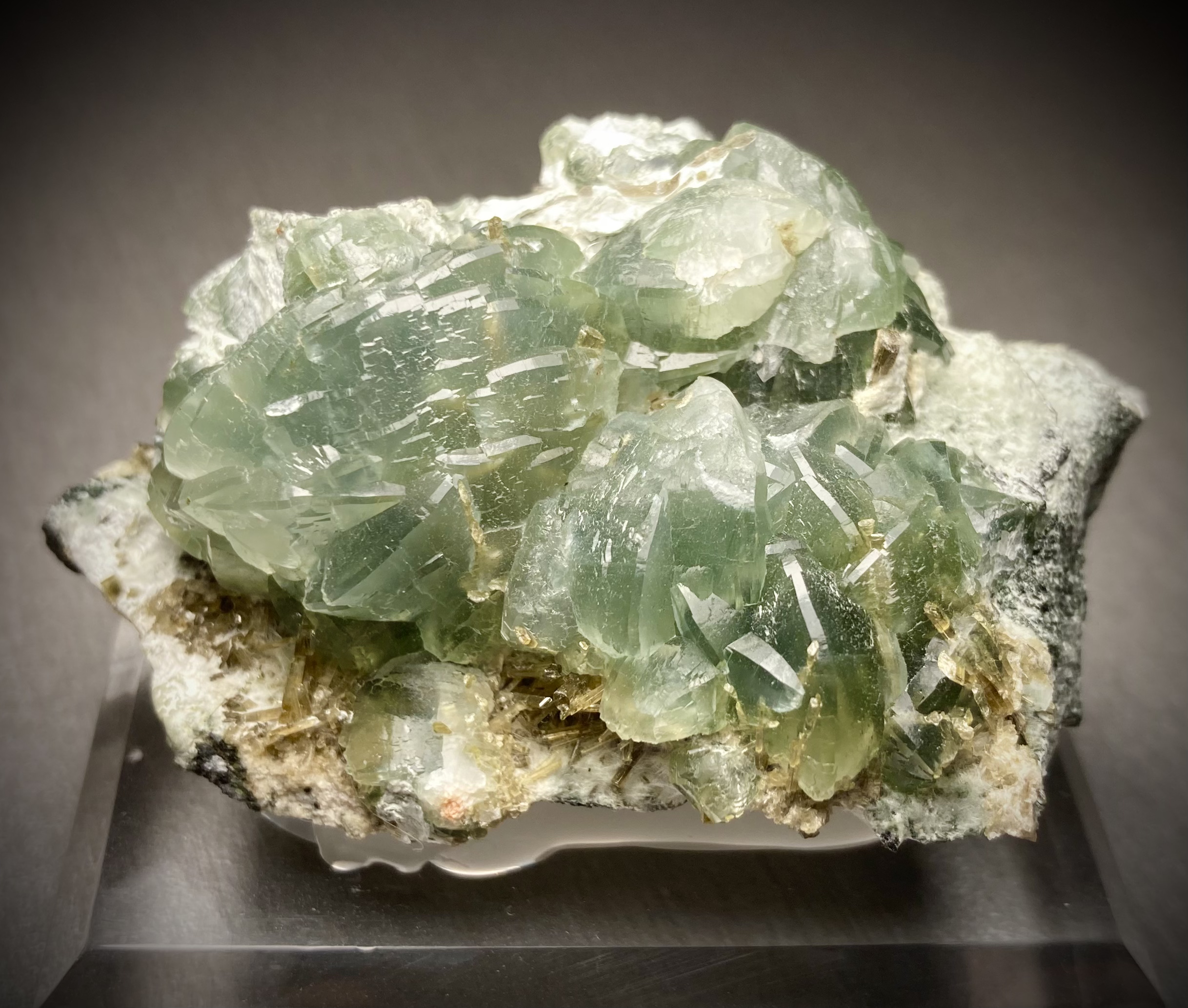Voici une prehnite de la Selle déjà montrée mais resoclée.