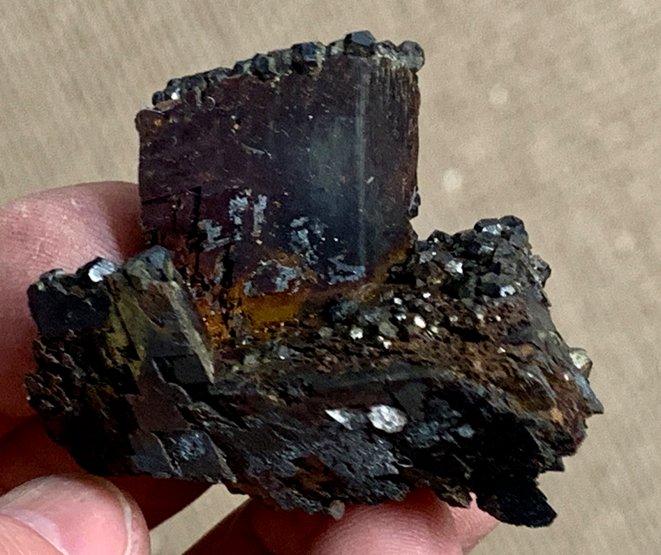 Axinite, cristal flottant dans l'habitus typique [55mm]