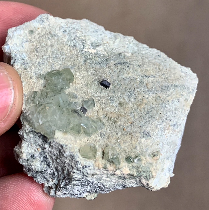Galène en petits cristaux cubiques dans la Ferro-Actinolite avec Prehnite [50mm]