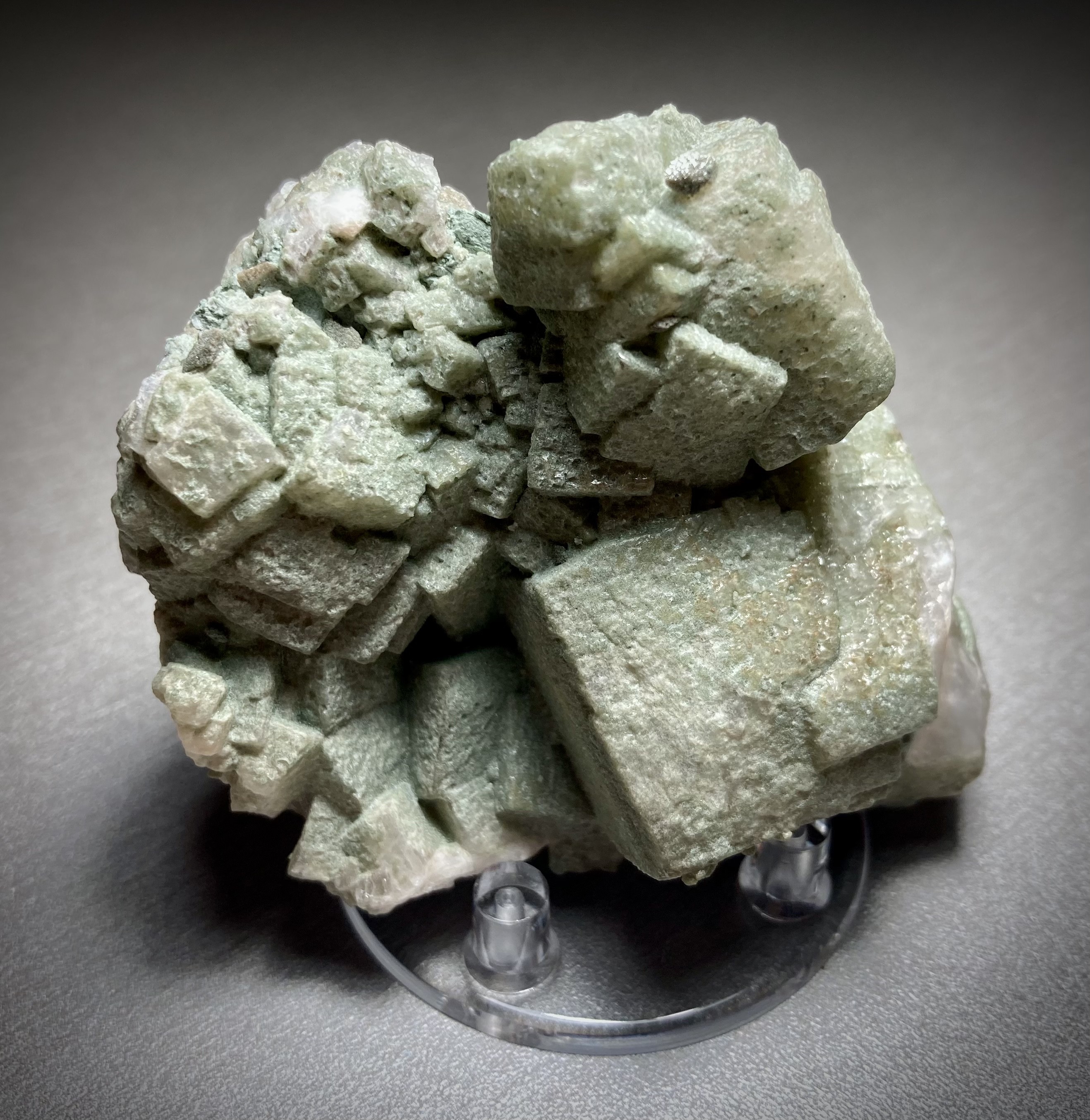 Pour varier les plaisirs : un flottant de calcite et chlorite de la fosse de font Poulain - Maronne-  avec « Spinthères » (variété de sphène chloriteux appélé ainsi par Haüy « Lacroix tome 2 page 240 »)