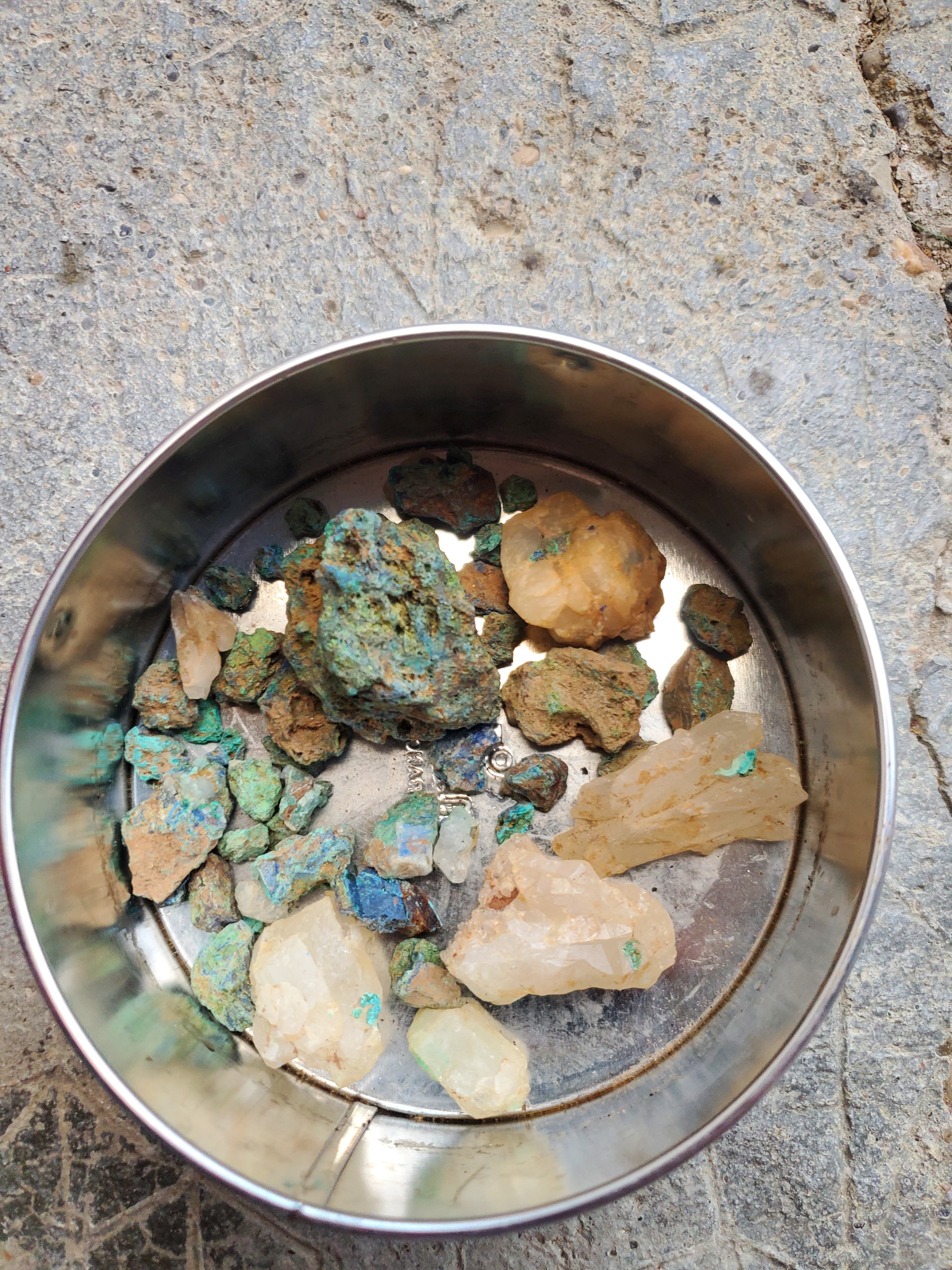 Il y a des quartz à âmes chloriteux, des nodules de malachites/azurites, du quartz(parfois combiné avec de l hematite mais j ai pas fais de photo précise car ce n est pas très impressionnant)20230824_203131.thumb.jpg.f63dd32bcfd74d1df50d94d9b943e884.jpg20230824_203034.thumb.jpg.18504b8a3f01d6e60855d358bc52ac9e.jpg20230824_202920.thumb.jpg.31a4d7ed674446441dab2b1ee5bd5d3c.jpg20230824_202905.thumb.jpg.c272ad0b7e06b86808024cda2f5488fb.jpg20230824_202701.thumb.jpg.abd3bceddd7702bc103e7c7cfe5f3b6a.jpg20230824_201017.thumb.jpg.7d2d2754e39051db7a73865defa583cb.jpg20230824_201014.thumb.jpg.302860c04c8f7fde9998582e432da62f.jpg20230824_150559.thumb.jpg.bb78a786ce174207b58e0f420d420ccf.jpg