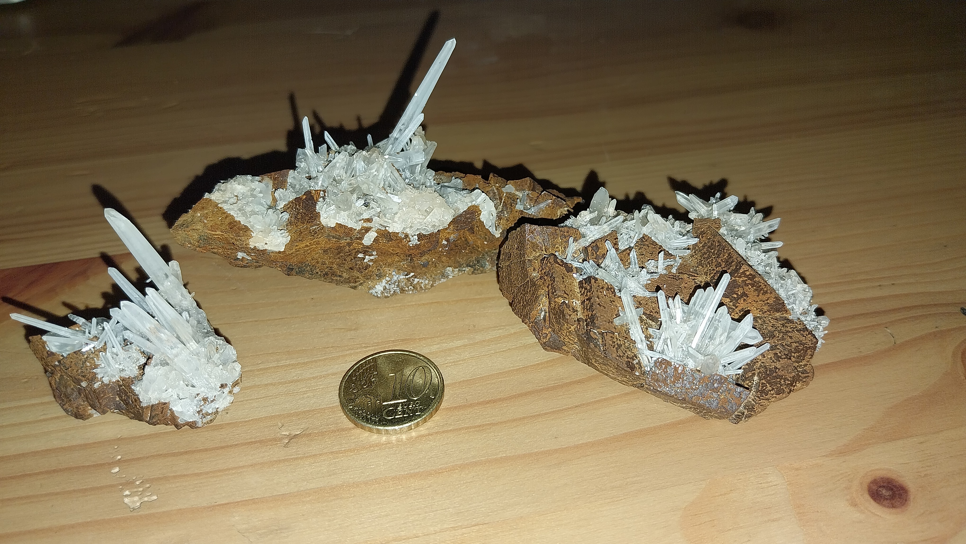 Je trouve le contraste entre la sidérite et le quartz très intéressant. D'ailleurs, je suis curieux de savoir ce qui rend l'aspect mat des quartz sur les pièces avec la sidérite. Ils ne sont pas laiteux pour autant, c'est comme une seconde minéralisation. Si quelqu'un a une explication je suis intéressé de l'écouter !