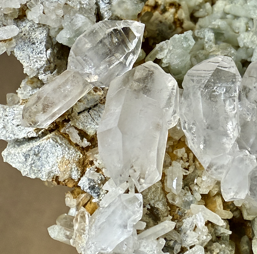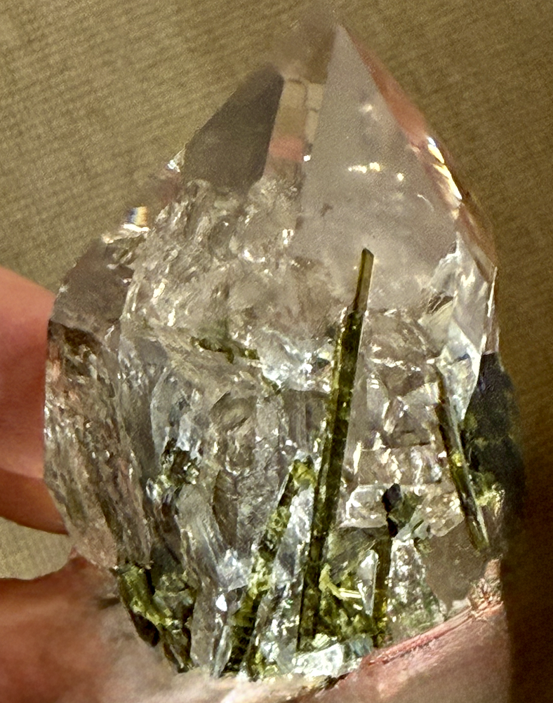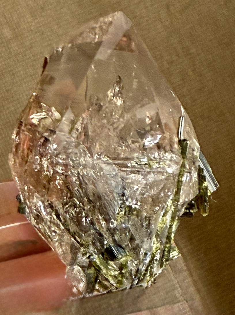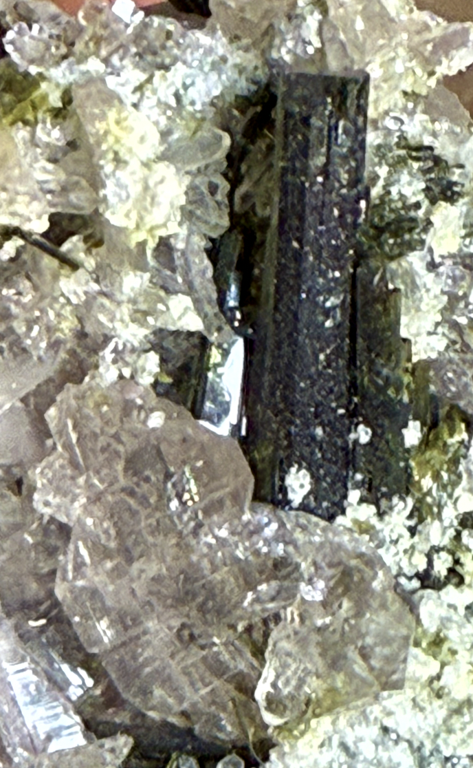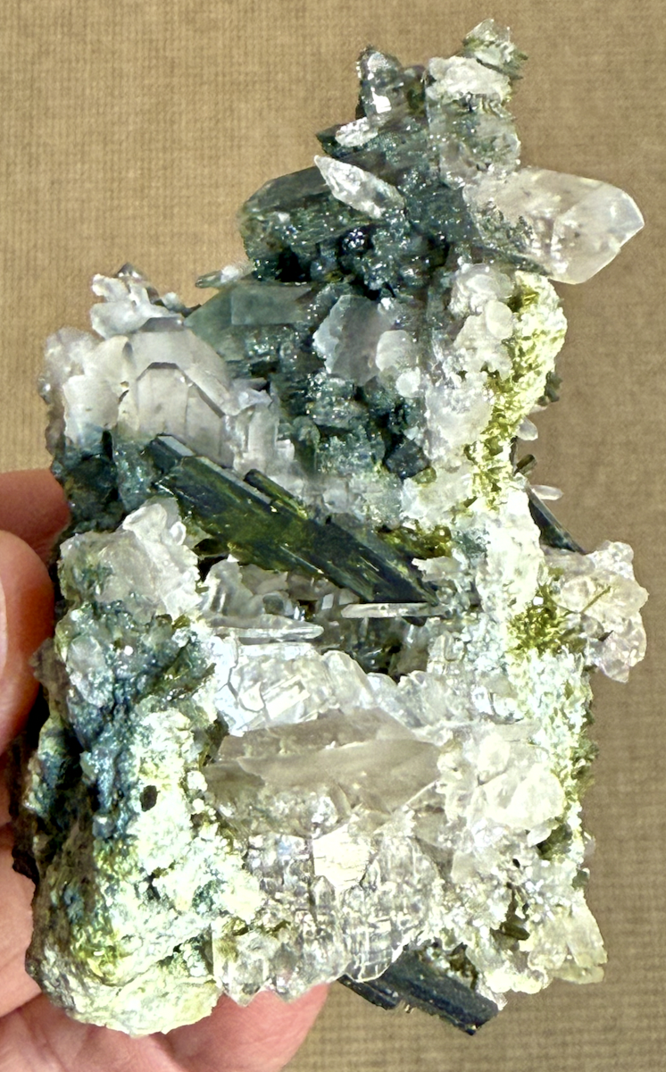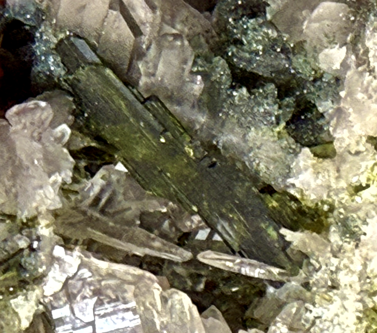 Épidote en cristaux prismatiques et à âme avec Quartz très légèrement enfumé [75mm]