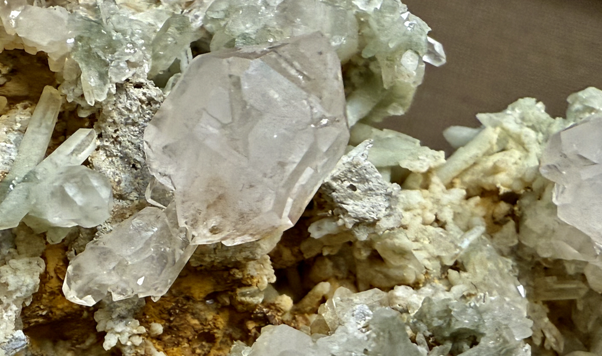Noter le quartz à âme "avorté", où sans doute la vitesse d'ouverture de la fissure a été supérieure à la vitesse d'accretion de l'individu cristallin.