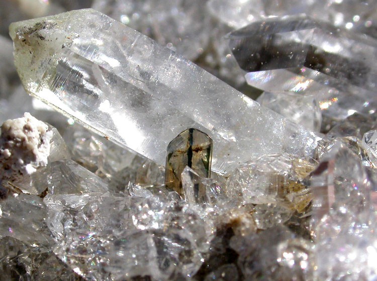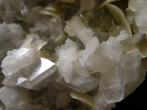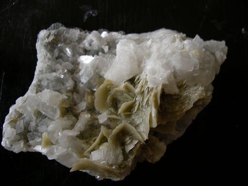 Une association du col du glandon (38) : épidote (cristaux jusqu'à 5-6 mm), albite chloriteuse (vert pâle) et axinite fibreuse blanche (d'après ce qu'on m'a dit mais j'ai toujours eu un doute sur plutôt de la trémolite :coucou!: ).