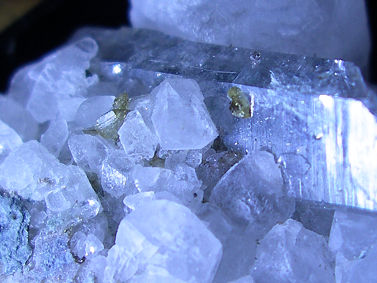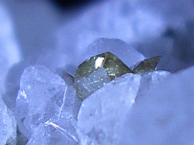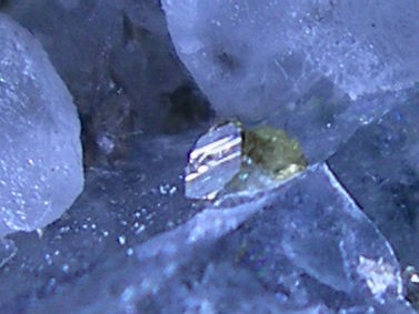 une tétraédrite entièrement transformée en azurite,avec un quartz;Mine à Giraud;3,3x2,2 cm