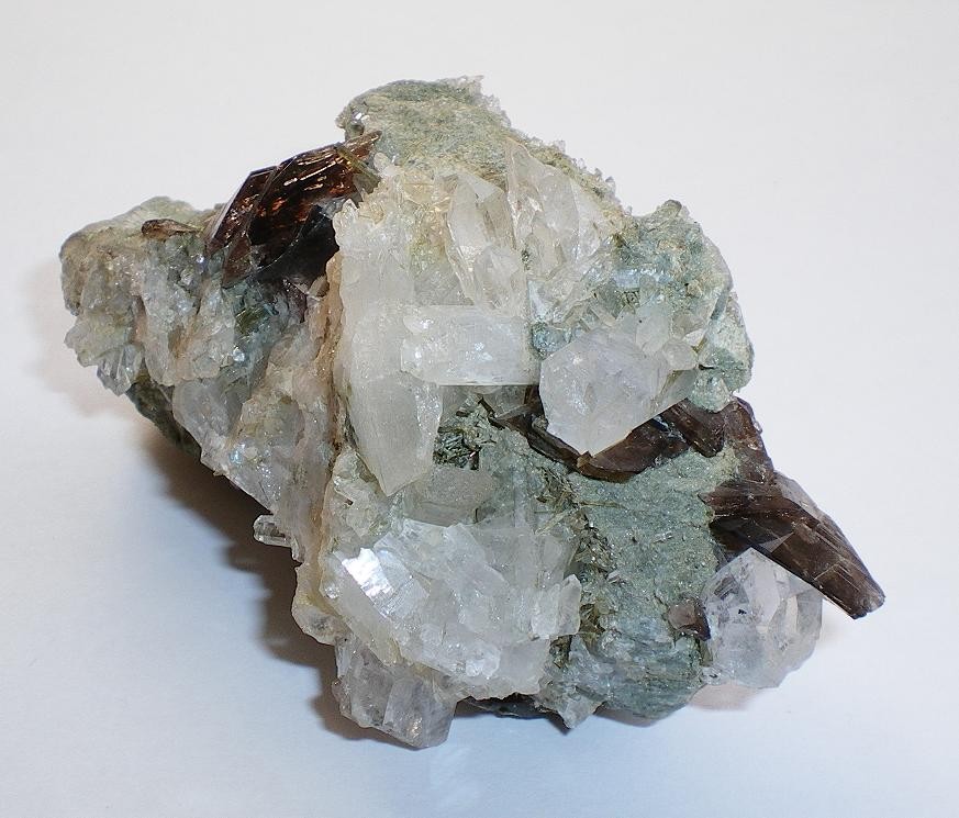 Un échantillon de ce lieu: Axinite Quartz Epidote (8 x 4 x 5cm) découverte du début des années 80