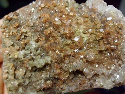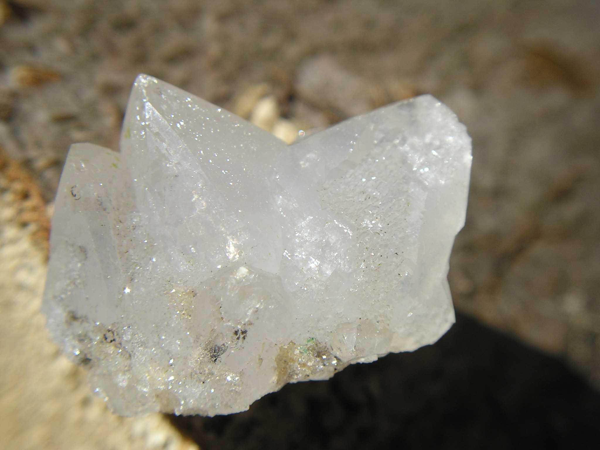 Un quartz recouvert d'une fine cristallisation de silice très brillants.