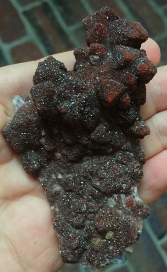 Pour les hématoïdes, les oxydes de fer sont englobés lors de la croissance du quartz. Là est-ce que c'est en inclusion dans la masse de quartz, ou juste un dépôt plus tardif le long de fissures ?
