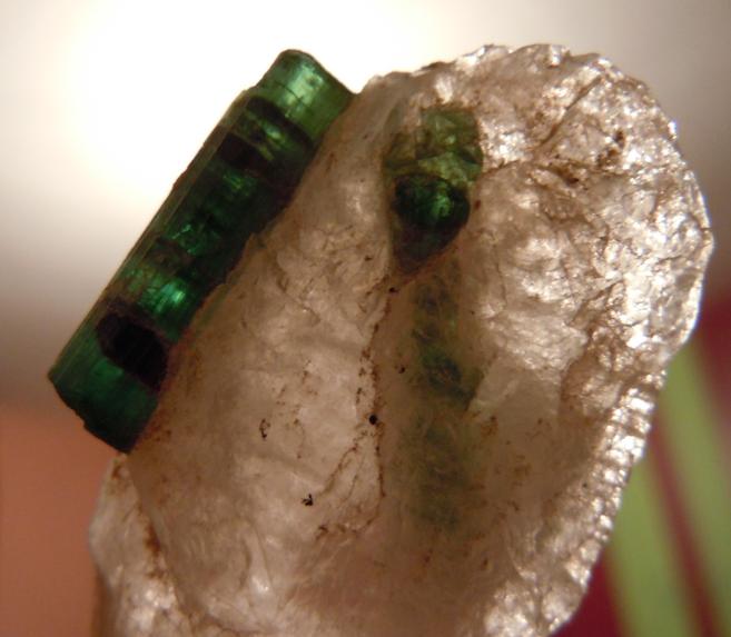 Cristaux de tourmaline elbaïte verte sur quartz, Cruzeiro mine, São José da Safira, Minas Gerais, Brésil.E333144F-DC96-49BB-8600-FEE7263A7FE8.jpeg