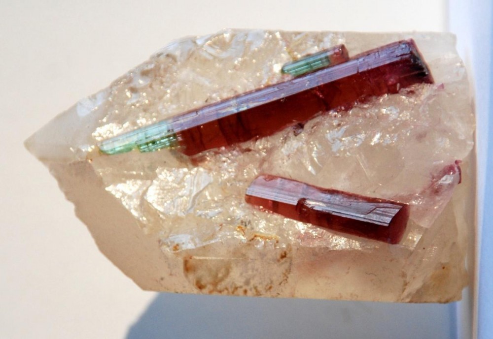 Photo de cristaux de Tourmaline, leurs gîtes et leur géologie, la cristallographie de cette espèce minérale, discussions et info sur cette gemme, photos de pierres taillées. Tourmaline désigne un groupe de minéraux de la famille des silicates, sous-groupe des cyclosilicates, avec notamment les minéraux suivant : Elbaïte, Dravite, Chromdravite, Liddicoatite, Schorl, Uvite, etc.