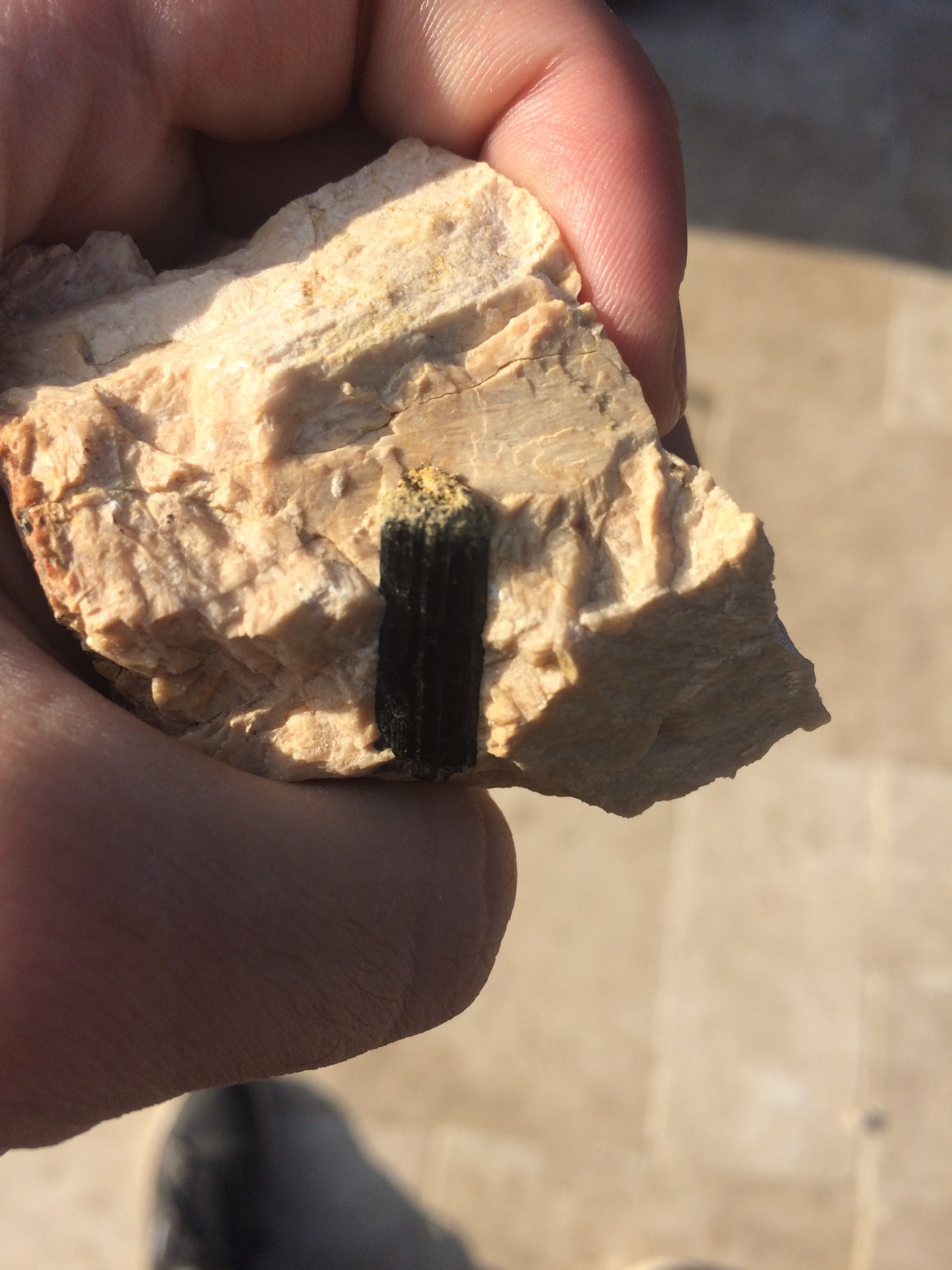 Pas de beryls ? En général, ils sont plutot dans les "blocs clairs" ....si beaucoup de tourmalines dans un bloc (" blocs sombres").... peu de chance d y trouver des beryls. Les beryls sont parfois dur a repérer car peu colorés et dans les mêmes teintes que la matrice.