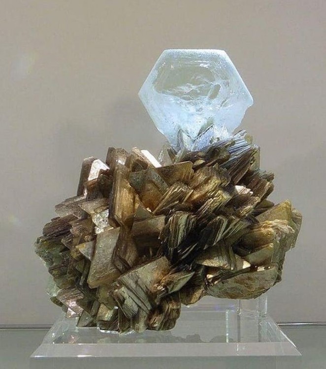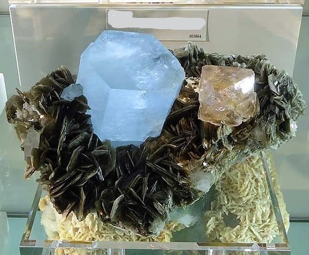 Aigue-marine de Taraouadji, Aïr, Niger : ressource très limitée et beaucoup de chance pour ce cristal qui est resté intact dans son filon de quartz.