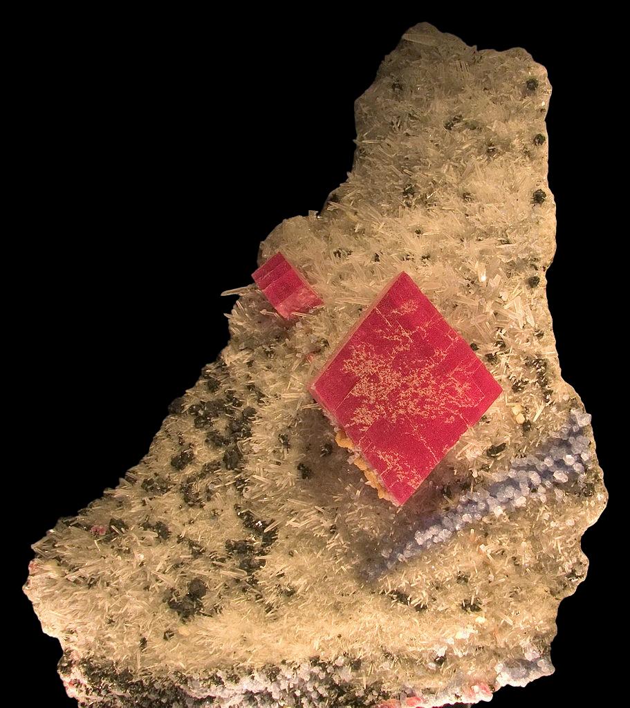 Les cristaux de Rhodochrosite sont ici particulièrement gemmes.