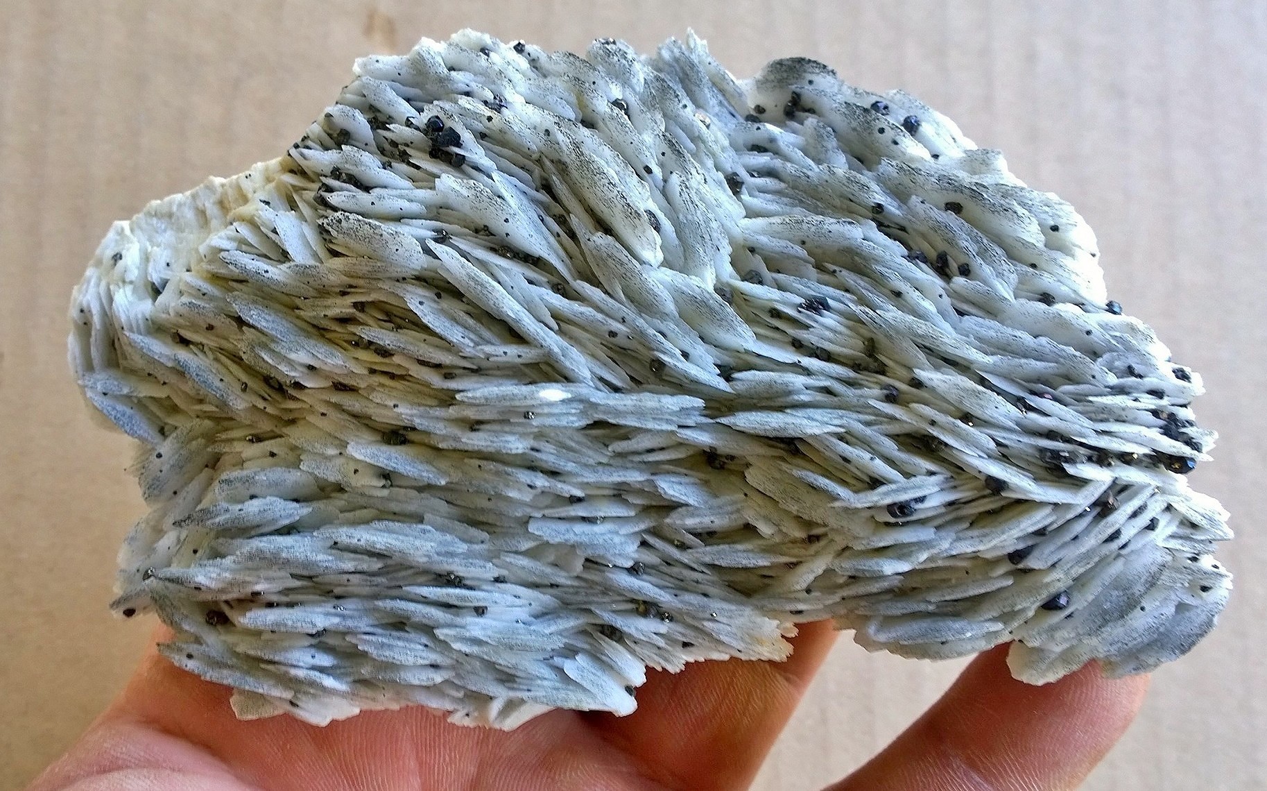 Cristaux de Tétraédrite sur grandes lames de barytine, mine des Malines, St Laurent le Minier, Gard (30). Photo et collection Vidal Vincent.