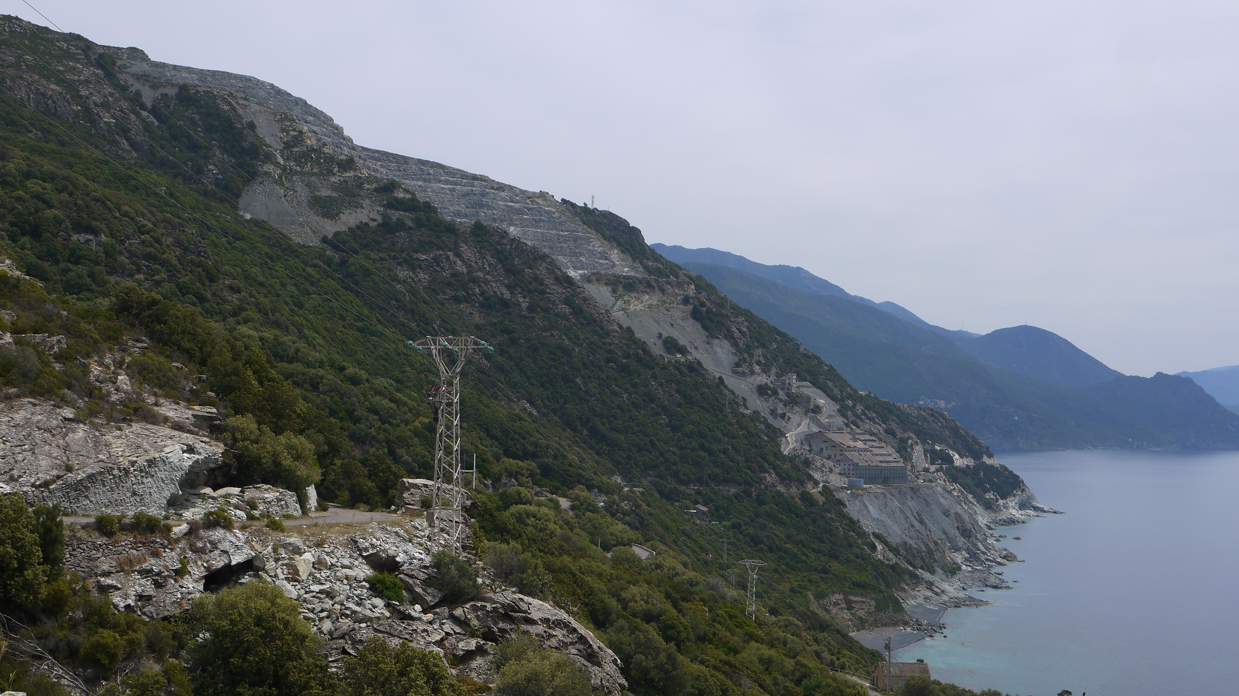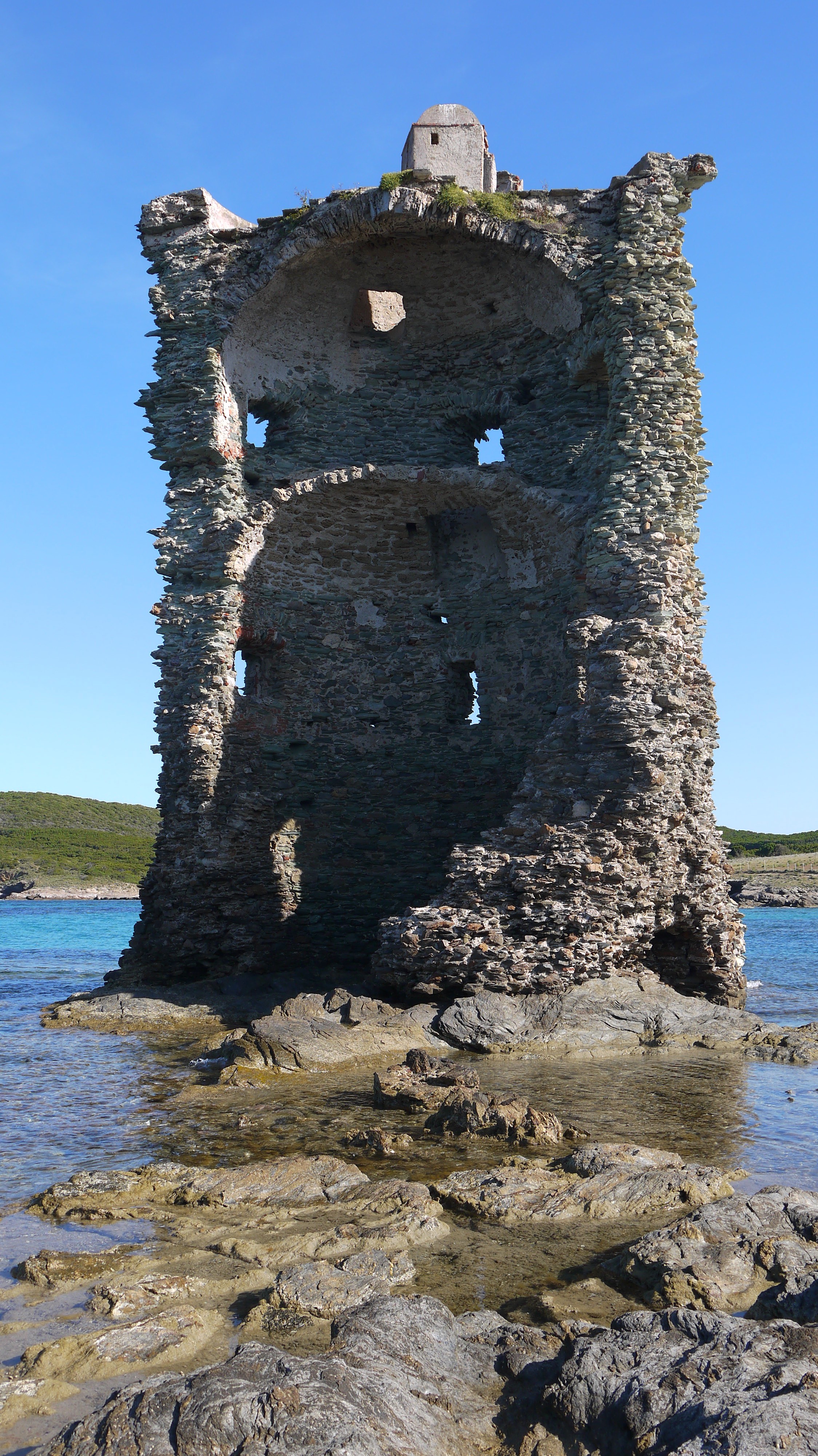 La très célèbre tour génoise de Santa Maria, en ruine, mais belle tout de même ! Construite avec des pierres du coin (roche verte - schiste) !