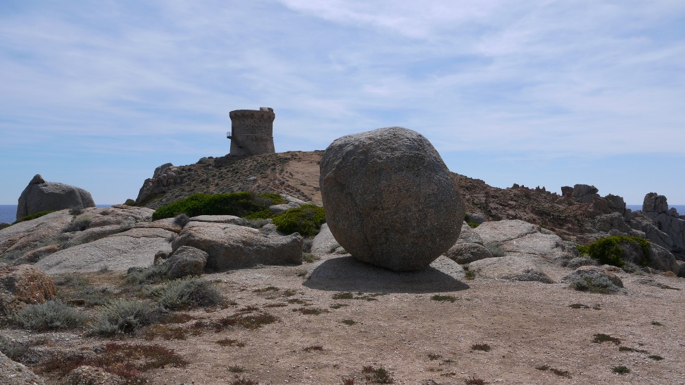 On commence avec la tour d'Omigna et sa BOULE de granite (100% naturelle) !