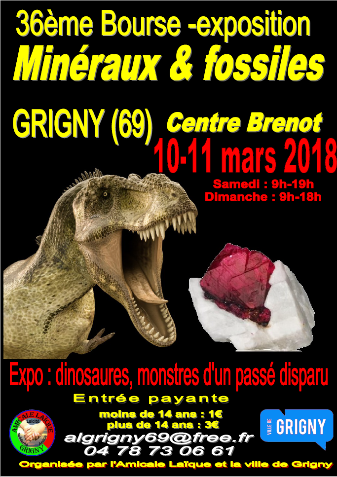Pour la 36ème édition , la bourse aux minéraux et fossiles de Grigny (69520) se tiendra les 10 et 11 Mars prochain, au centre Brenot, 2 rue W. Rousseau, Grigny.