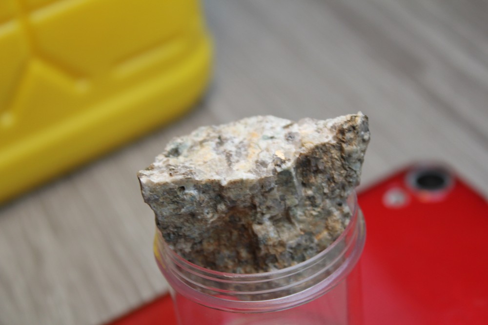 pour les teintes grises à vert-pâle c’est facile dans un granite altéré :
