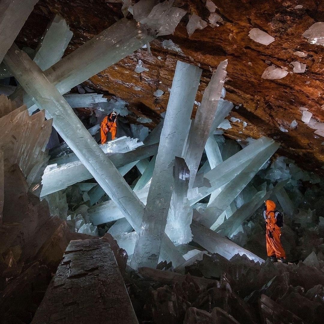 Je me souviens d'avoir lu qu'en temps normal cette grotte elle est en immersion . Elle est vidée pompée de son eau pour la mine qui se situe au dessus , et qu'après exploitation de cette mine mexicaine , le pompage sera bien entendu stoppé , et la grotte de retrouver son milieu aquatique .