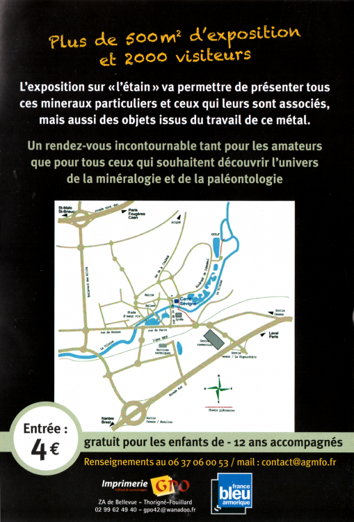L'exposition thématique portera sur les minéraux de l'étain (merci à Gael Daguin pour cette initiative).