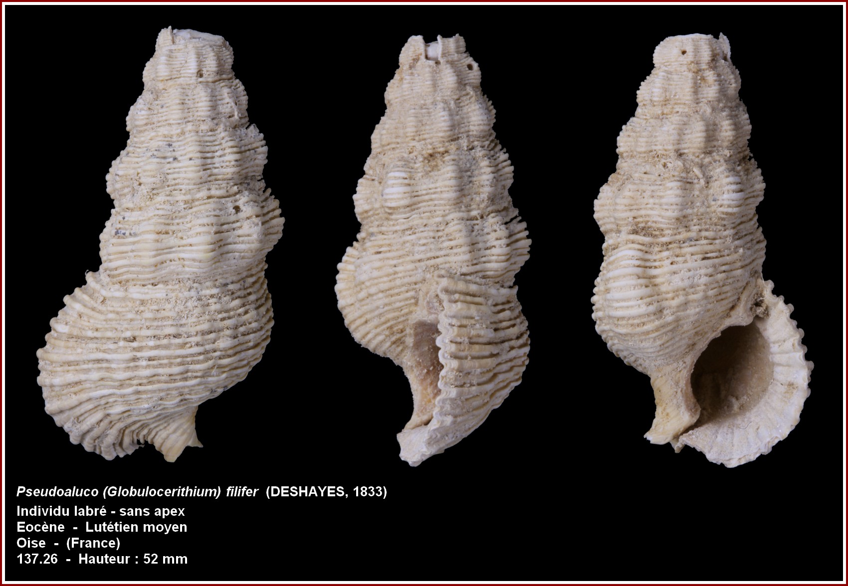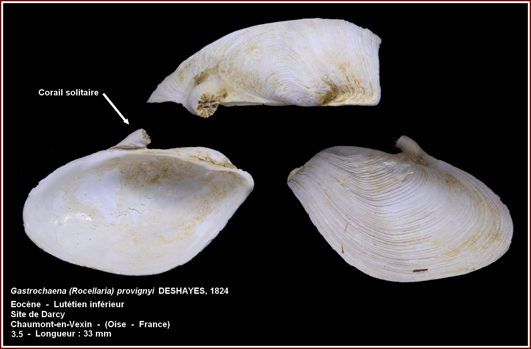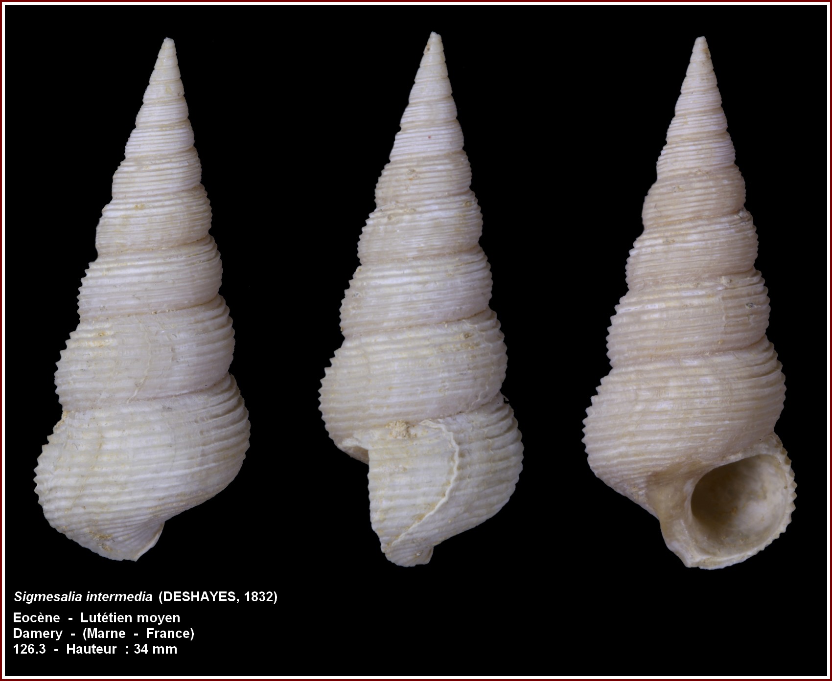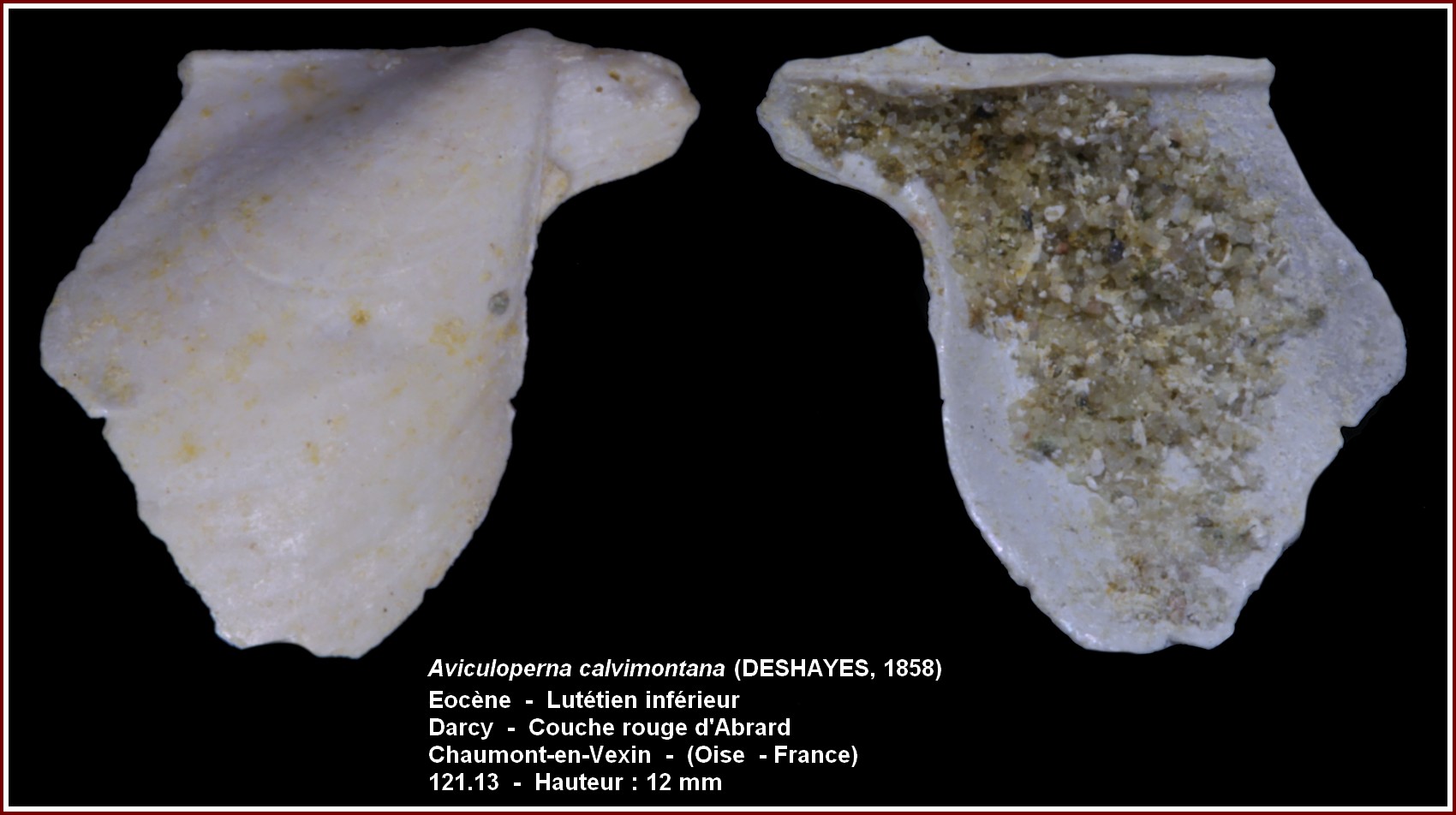 2) Lutétien moyen (le plus riche en faune malacologique, plus de 1000 espèces de mollusques et des centaines d'autres en terme de foraminifères, ostracodes, échinodermes, coraux, bryozoaies, crustacés, algues calcaires, vertébrés marins et continentaux etc...