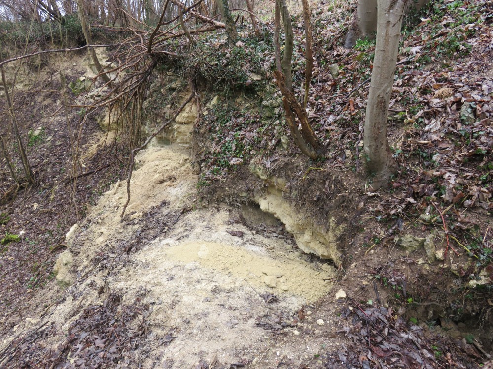 Par ailleurs les parois sont par endroits assez abruptes et on creuse sous les arbres.