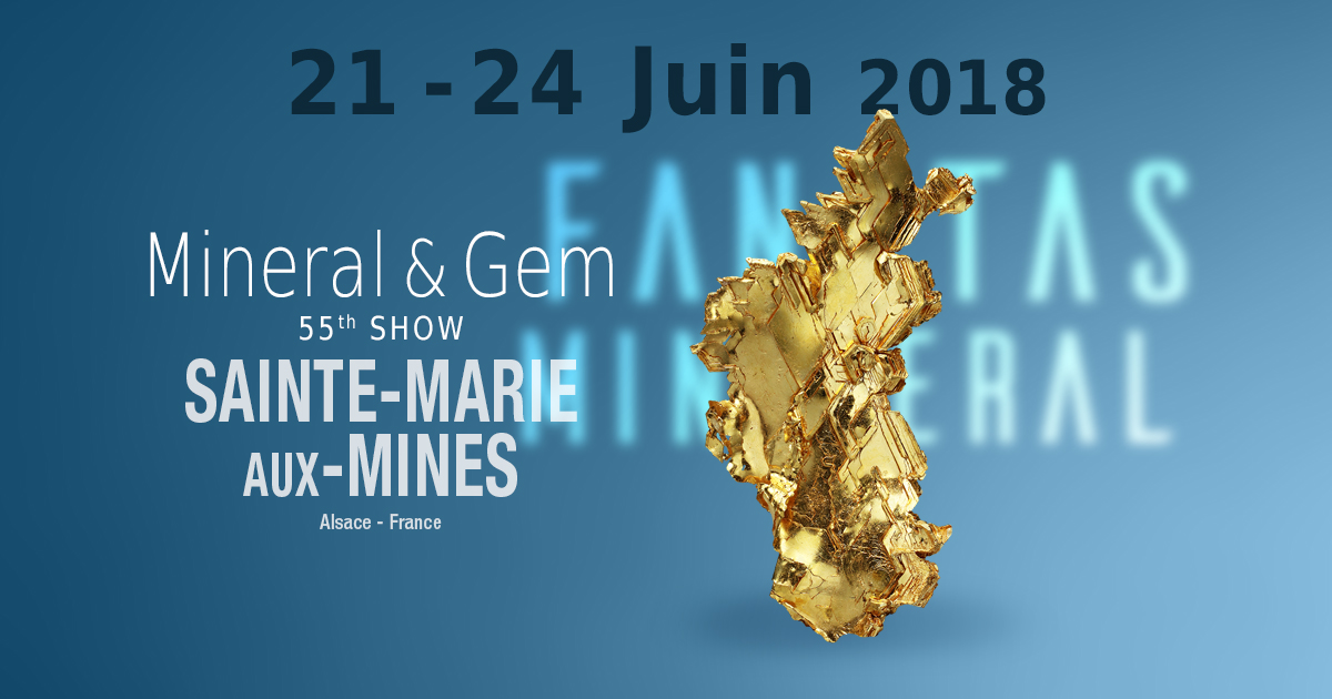 55ème édition de Mineral & Gem, la bourse aux minéraux, gemmes et fossiles de Sainte Marie aux Mines en Alsace, du 21 au 24 juin 2018.