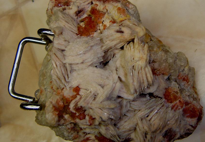 Je sais juste qu'une pièce semblable (pyrite sur fluo rouge brillante) présentée il y a 2 ans à la bourse d'autun sur le thème de la fluo a été trouvée personnellement par une personne du club d'Autun en 1965 à la sortie de la mine, c'est pour cela que j'ai supposé la date