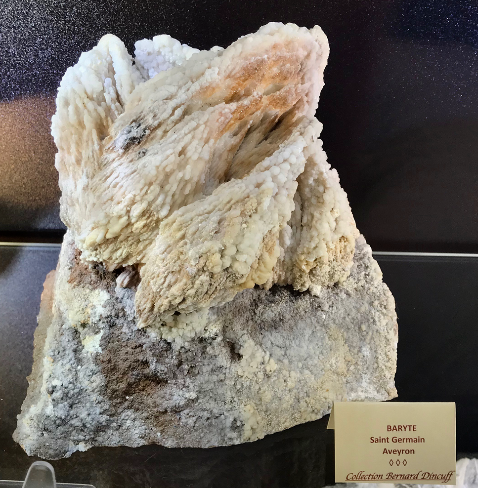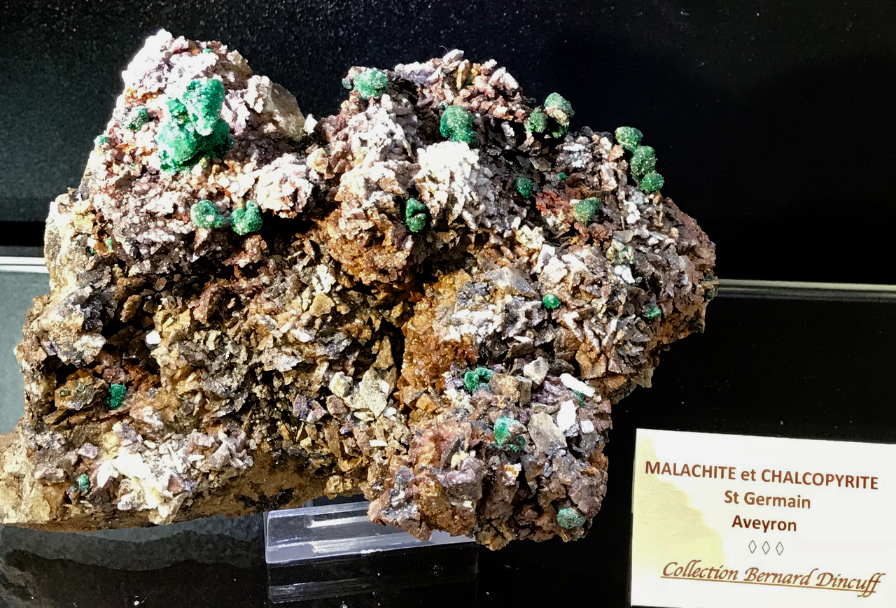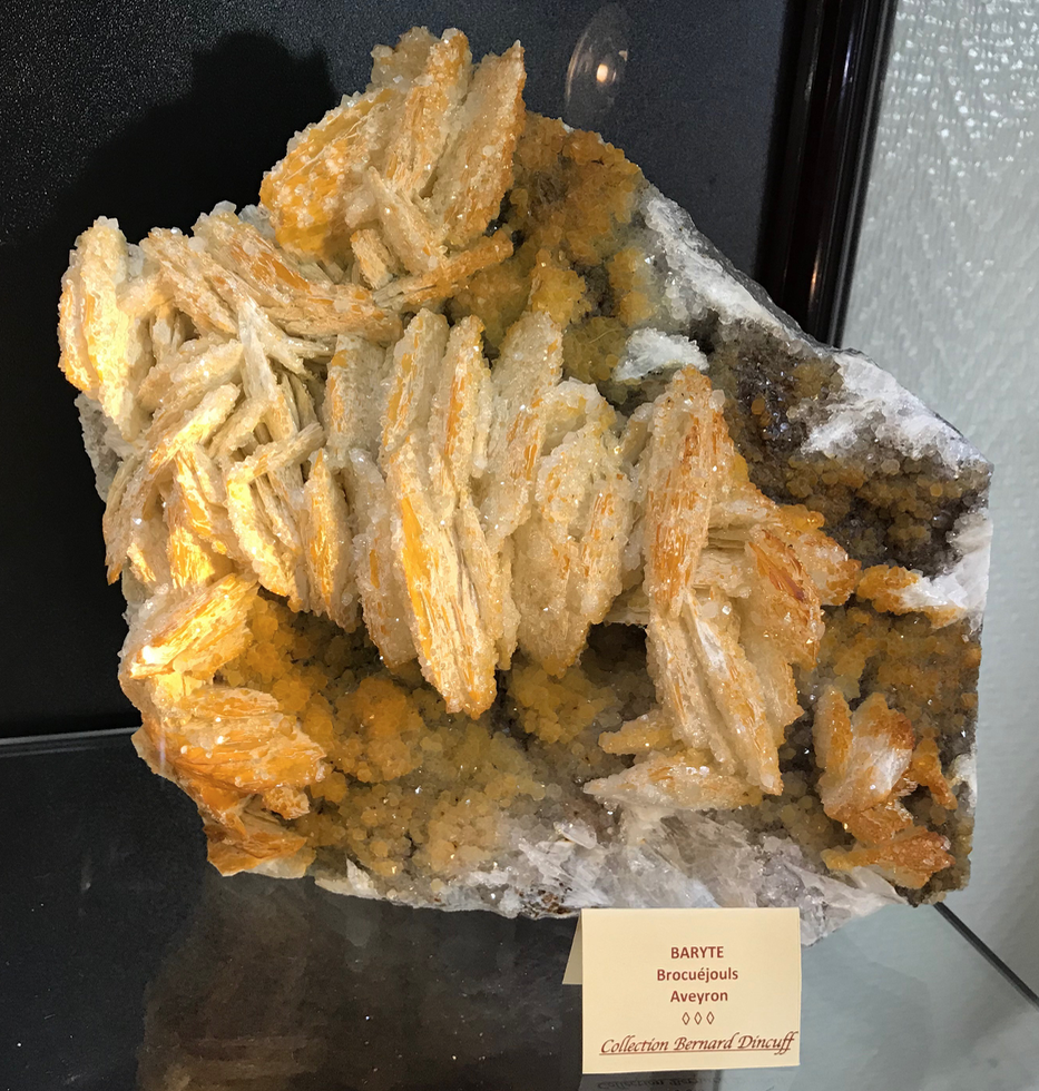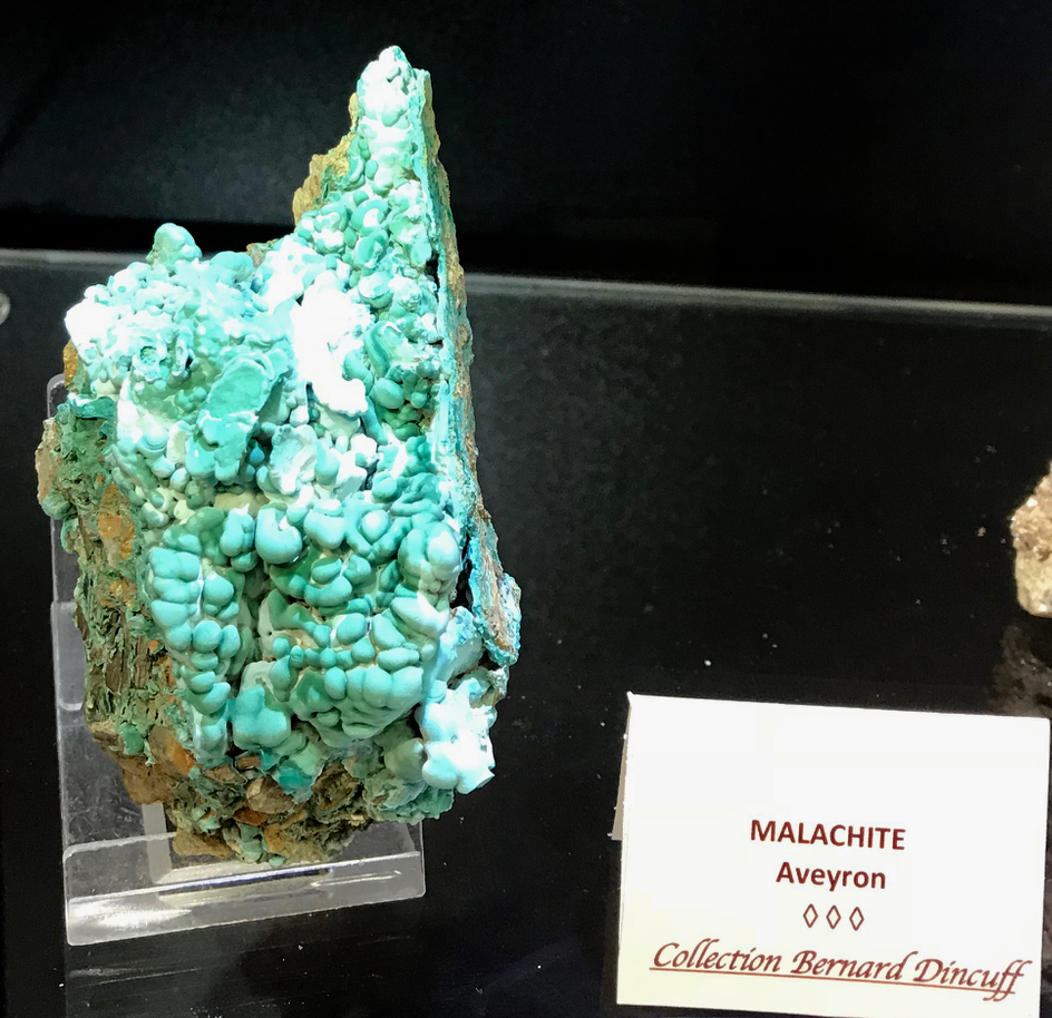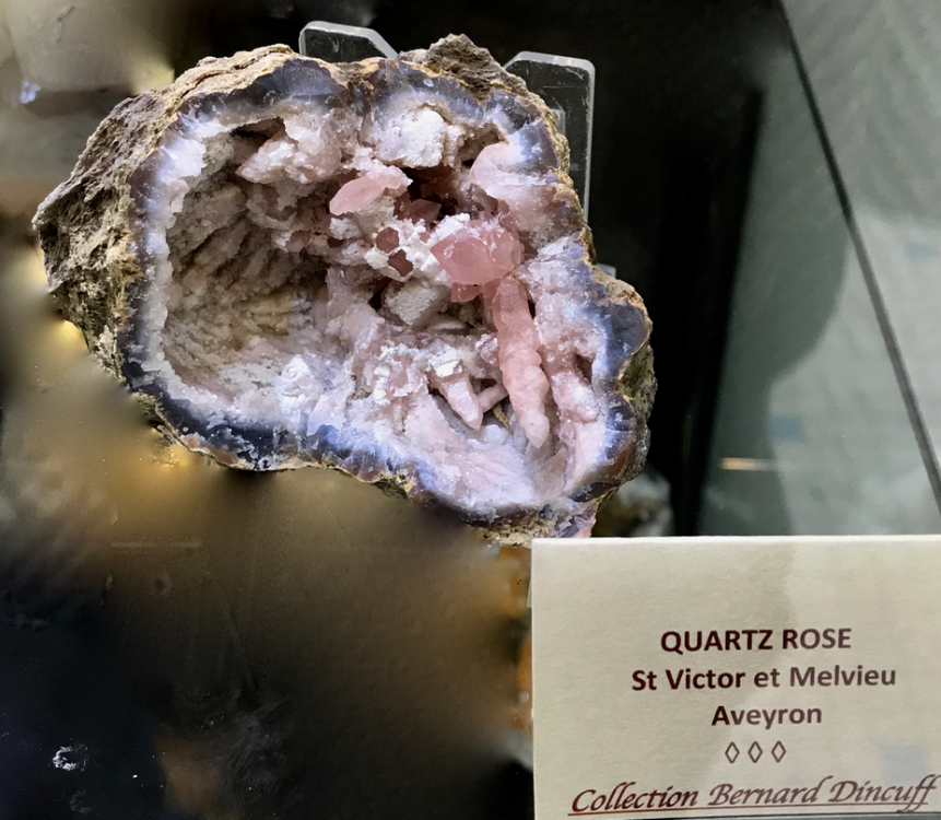 Quelques spécimens remarquables en vitrine dans l'expo minéraux d'Aveyron.
