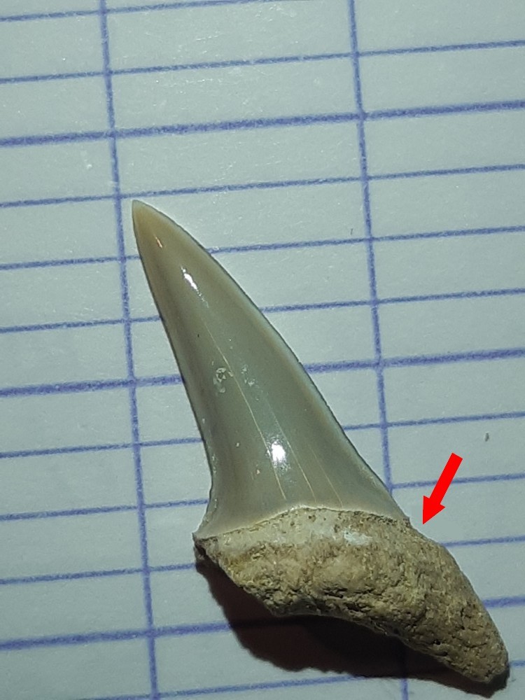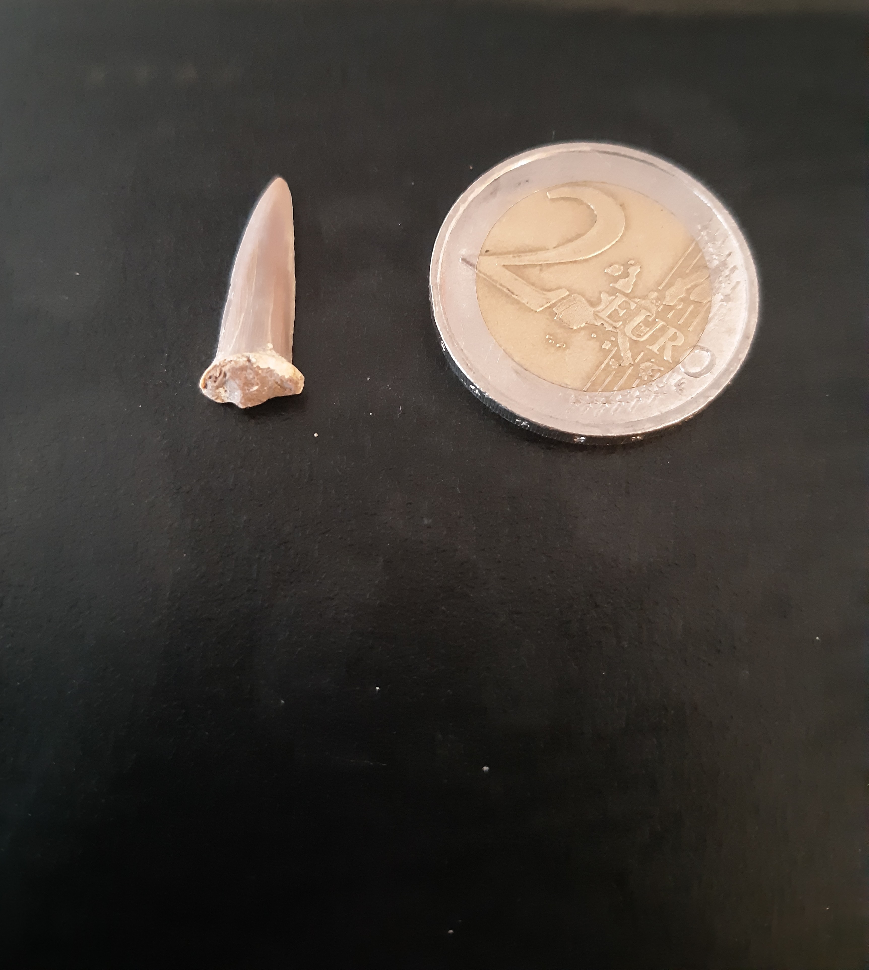Une dent de requin malheureusement incomplète, j'avais également un bout faisant la moitié de celui ci avec seulement la pointe.