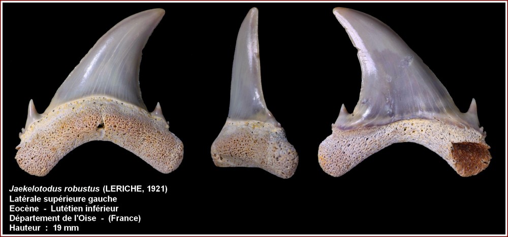 Une cuspide de requin très probablement du Stiratolamia macrota espèce largement prédominante dans ces niveaux que l'on reconnait essentiellement par les plis sur la face interne, sauf si la dent est usée