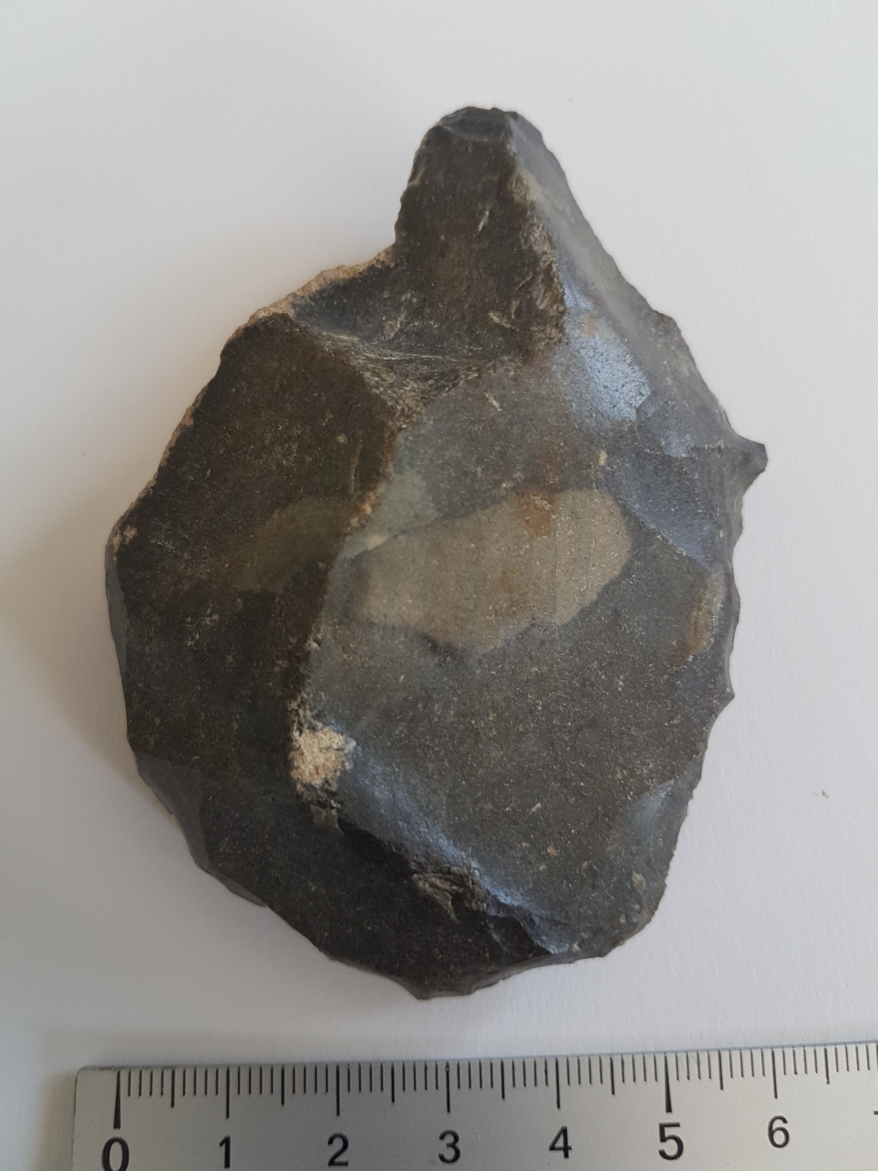 Pour moi il pourrait s'agir d'un grattoir, associé à une partie pointe. N'étant pas le plus beau spécimen que j'ai pu voir, je ne suis pas sur a 100% de mon identification.