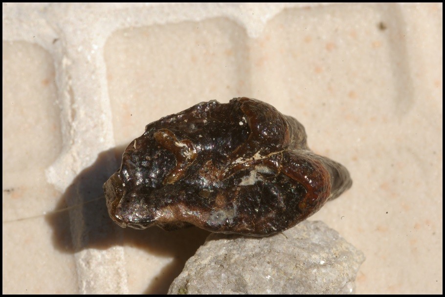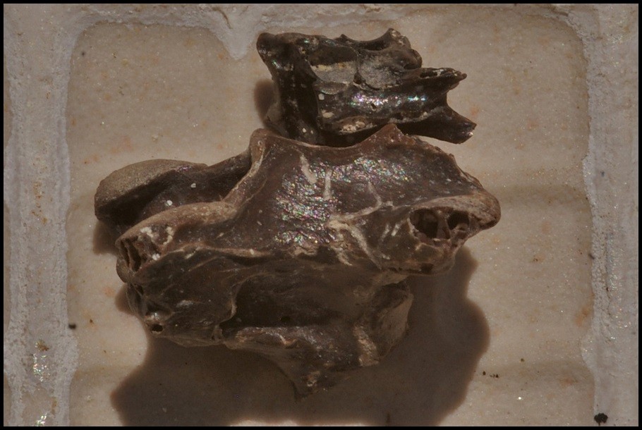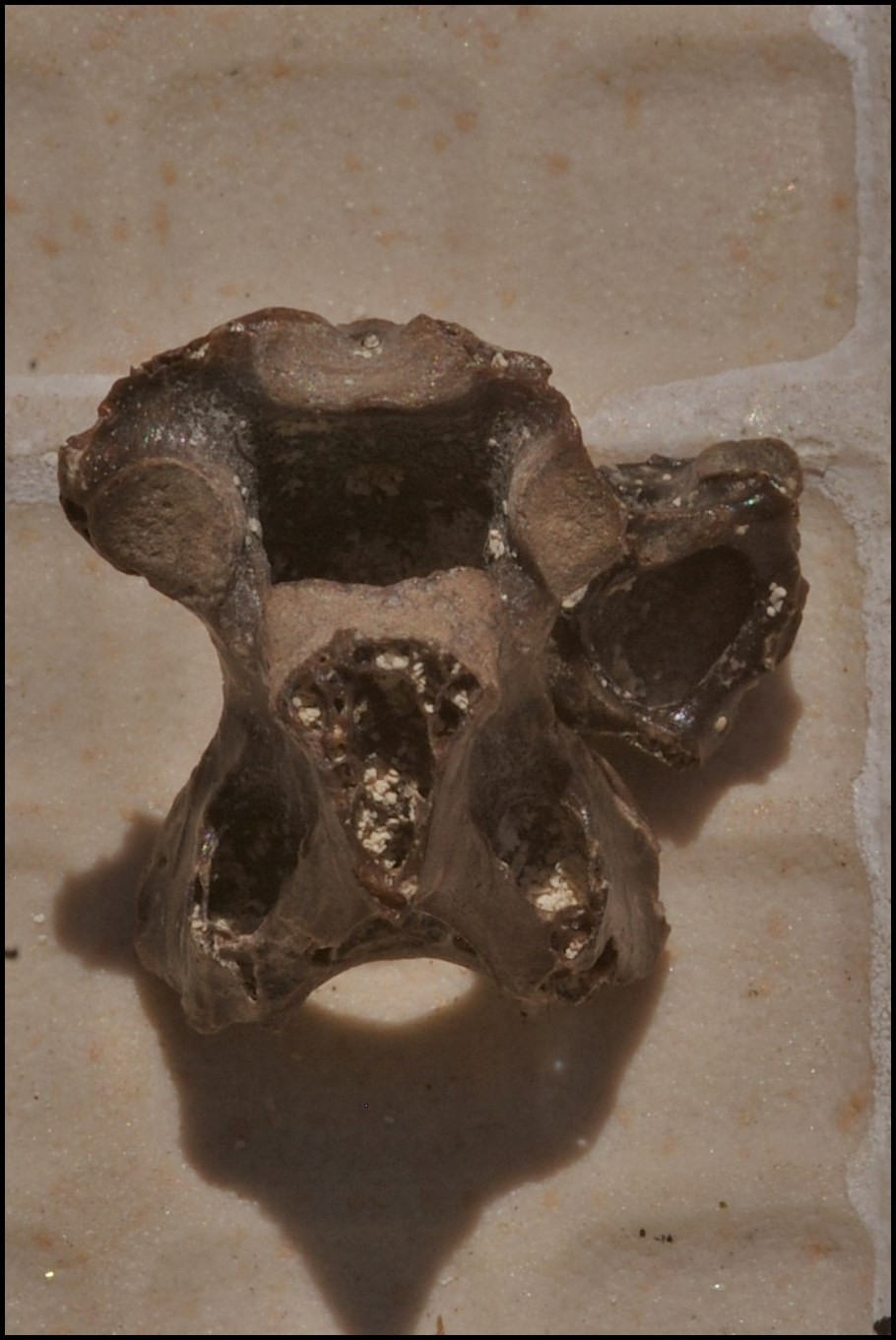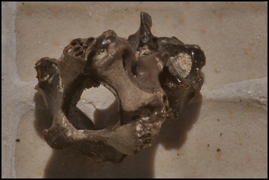 pour Gael (entre autres...) : quelques clichés de la vertèbre éventuelle de serpent? "calée par une cousine , indéterminée ...