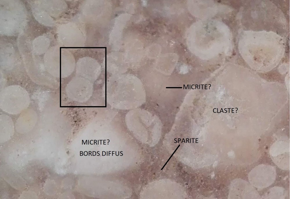 Maintenant, macroscopiquement, sur le terrain, j'aurais probablement annoncé aussi calcaire oolithique.