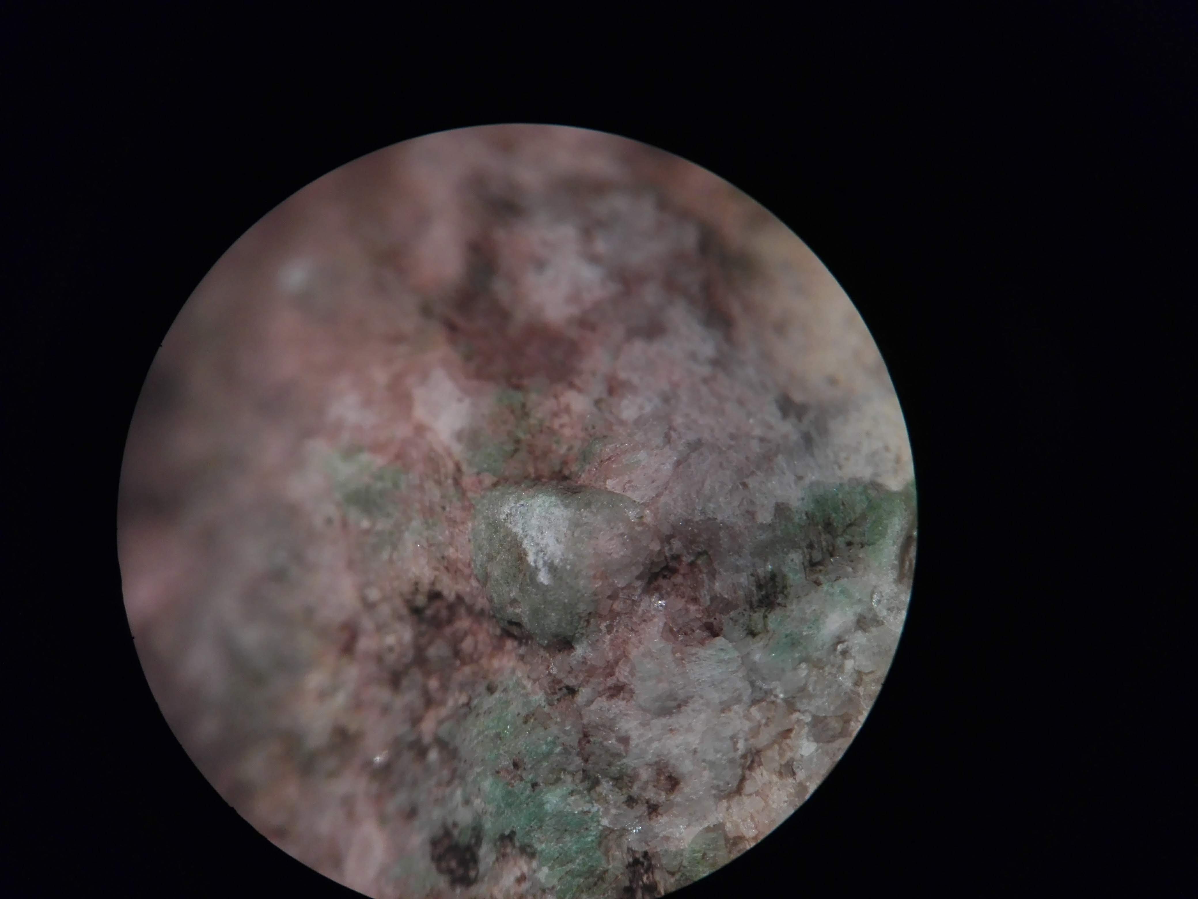 Et je peux garantir que le vert n'est pas d'origine organique, du moins sur les photos au binoculaire car cette pierre a subi quelques nettoyages intensifs, y compris à la javel (peut être une mauvaise idée, mais je n'ai pas remarqué de changement entre avant et après avoir mis la javel sur des portions de "test" )