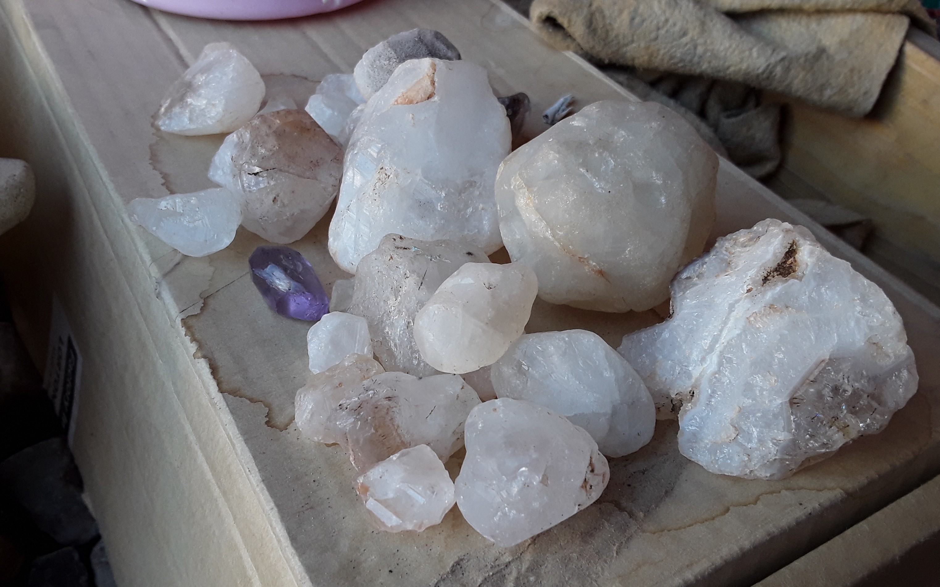 Nul doute que c'est du quartz, mais je voudrais voir la rayure faite sur du quartz, avant et après l'avoir frottée (la rayure) assez fort avec un chiffon, juste pour être sûr que c'est une rayure et non un dépôt de l'échantillon...