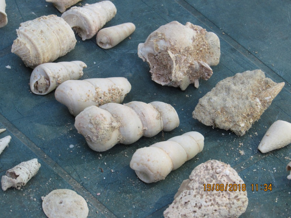 1/ état des coquilles trés variable pour cette "couche" plutôt argilo-Marneuse (et jaune/orangée) ;