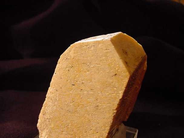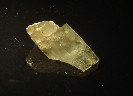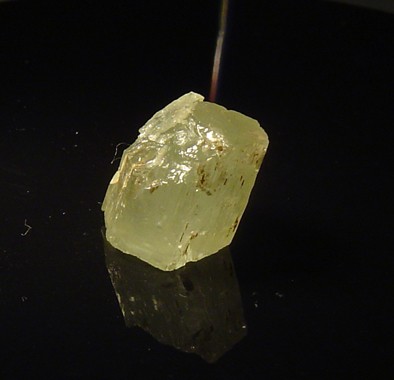 c'est un petit heliodore, la photo est pourri mais la qualité est là , malheureusement il n'est pas gros (6mm de long) mais c'en est un !! :grand sourire: il a ses 6 faces et ses figures de dissolution ; il a été trouvé dans un déblai dans une petite poche de quartz
