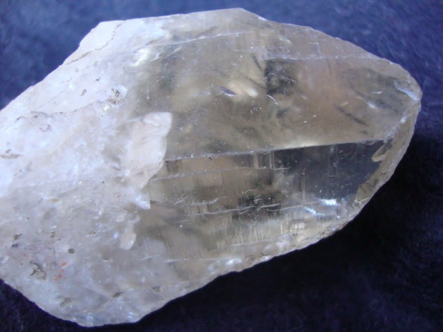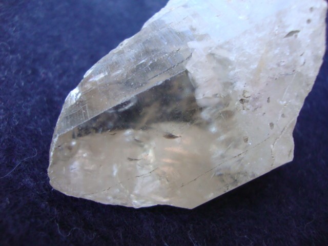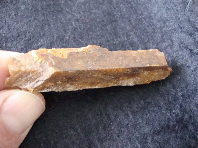 Le deuxième échantillon est un fragment quartz légérement fumé mais décoloré et parfaitement translucide en provenance de Vénachat trouvé dans un déblai (dim. 8x4 cm)