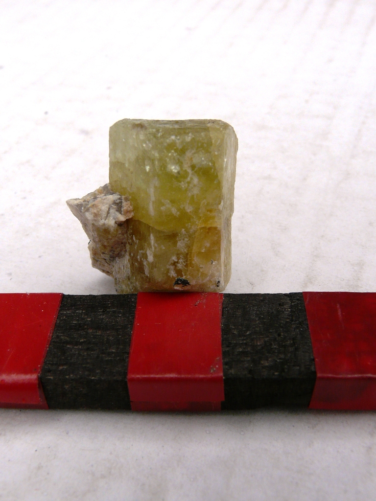 Je suis venu avec ma fille Justine et l'échantillon de "cailloux jaune" dont tu parles doit être celui-ci. Il fait partie de la découverte de fin 2010. C'est une de ses découvertes. (dim. 3 x 1,5 cm)