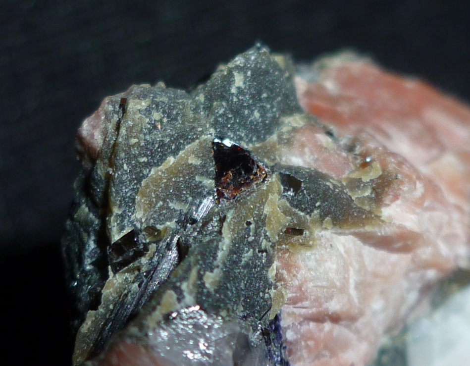 Sphalérite dans micas altérés et tourmaline, section de 5mm