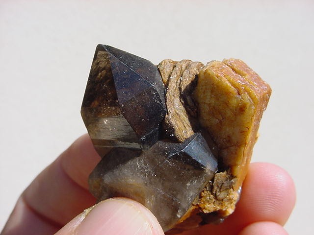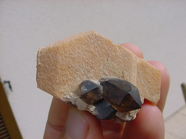 Quartz morion sur Orthose en provenance de Vénachat découverte de juin 1994 (dim 15 x 10 x 7 cm)