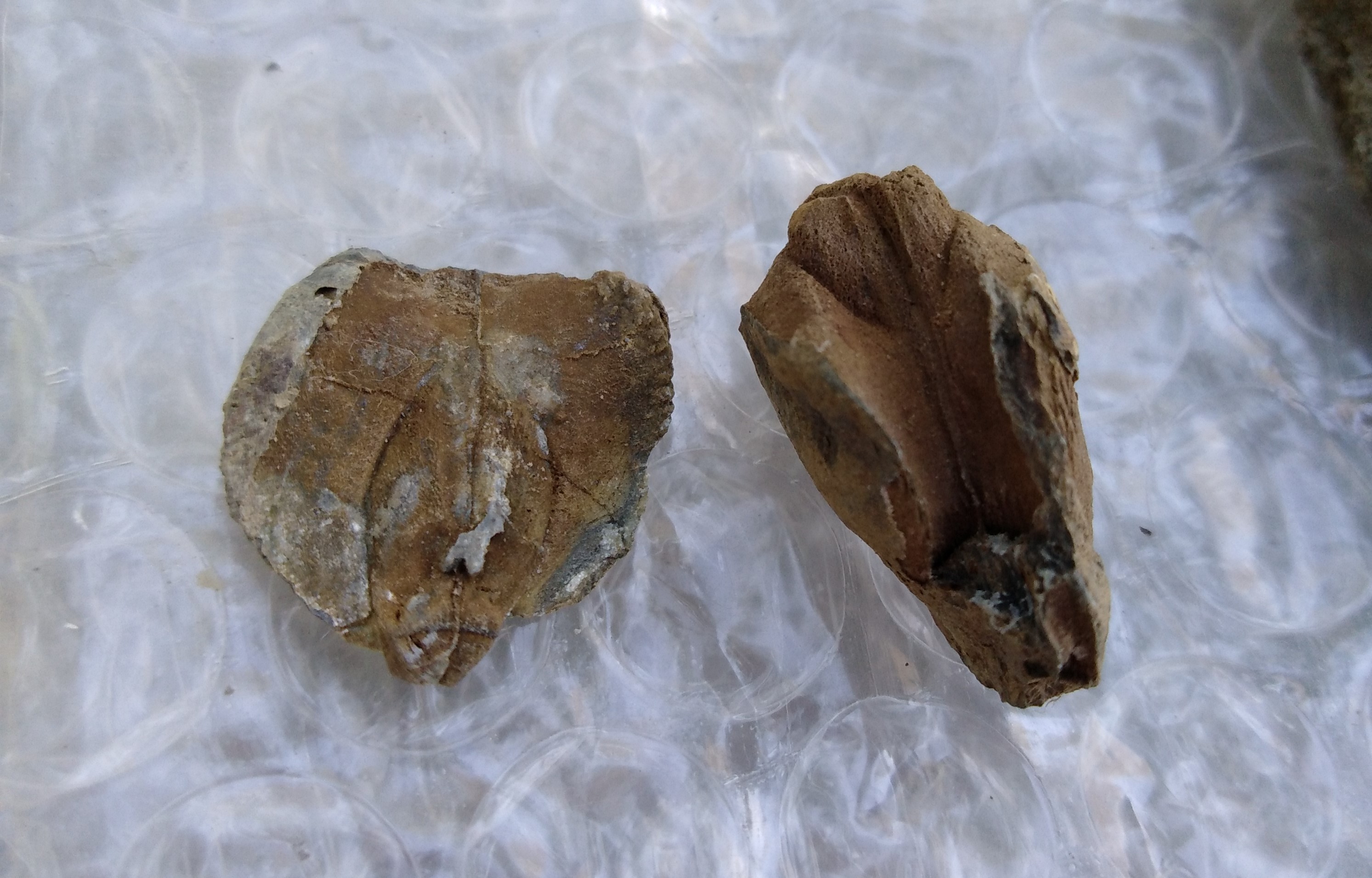Aujourd'hui je suis allée fouiller dans de l'Eiffelien et j'ai trouvé ces petites choses d'environ 2 CM de long, en plus des trilobites et coraux. Est-il possible que ce soient des larves de trilobites ?