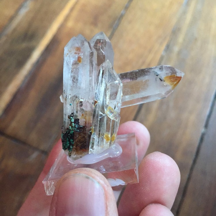 Quartz avec malachite + chalcopyrite ? + brannérite ? - Mine à Giraud Oisans