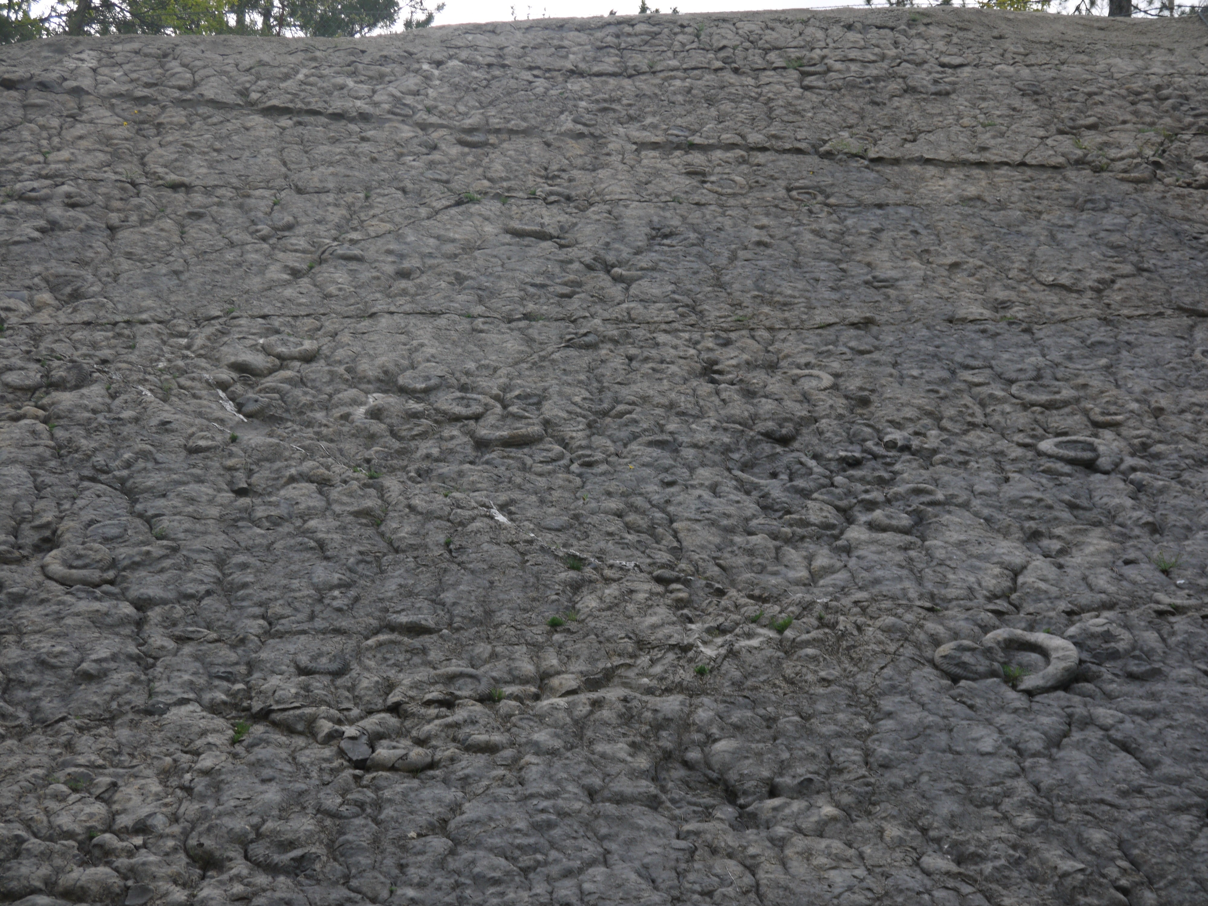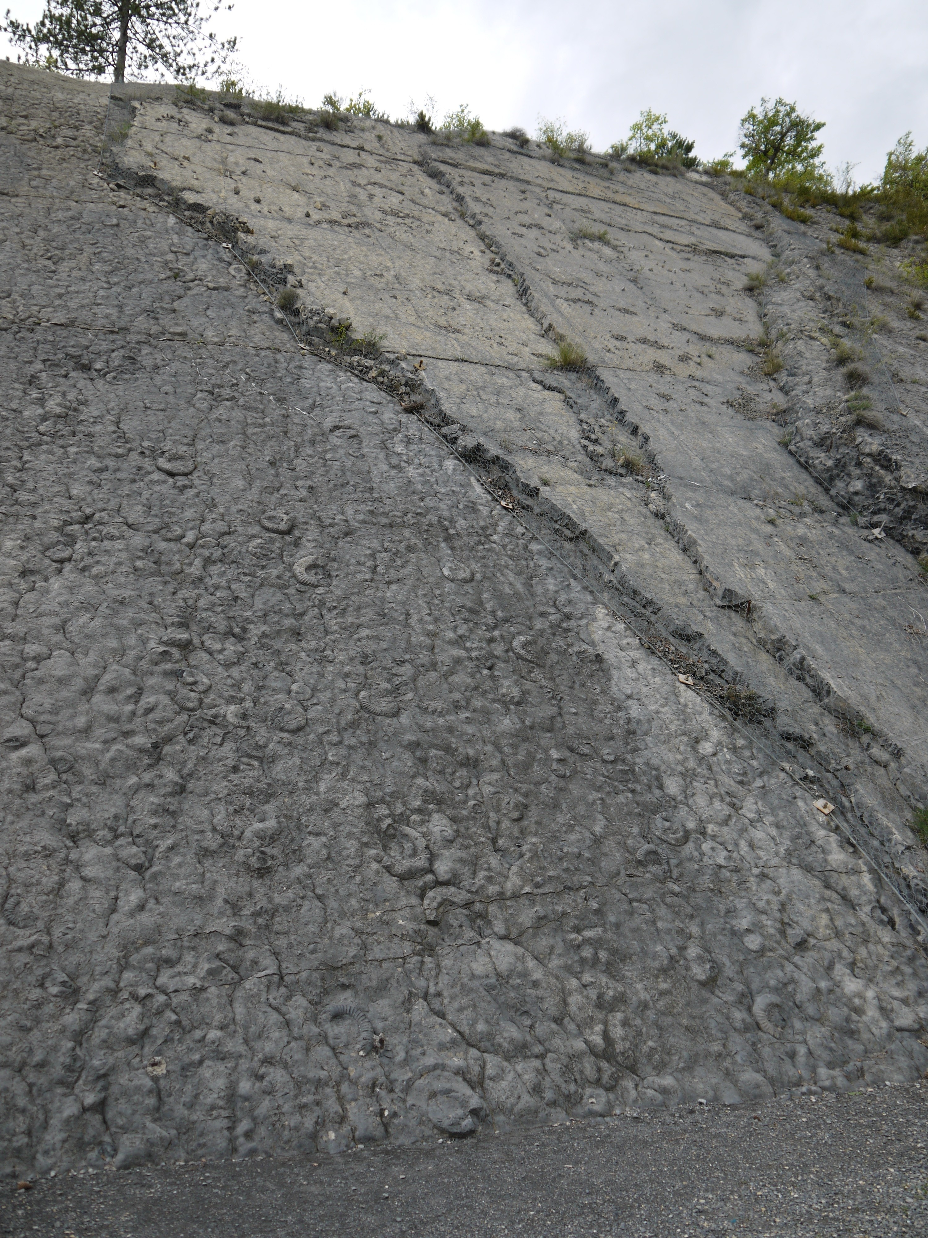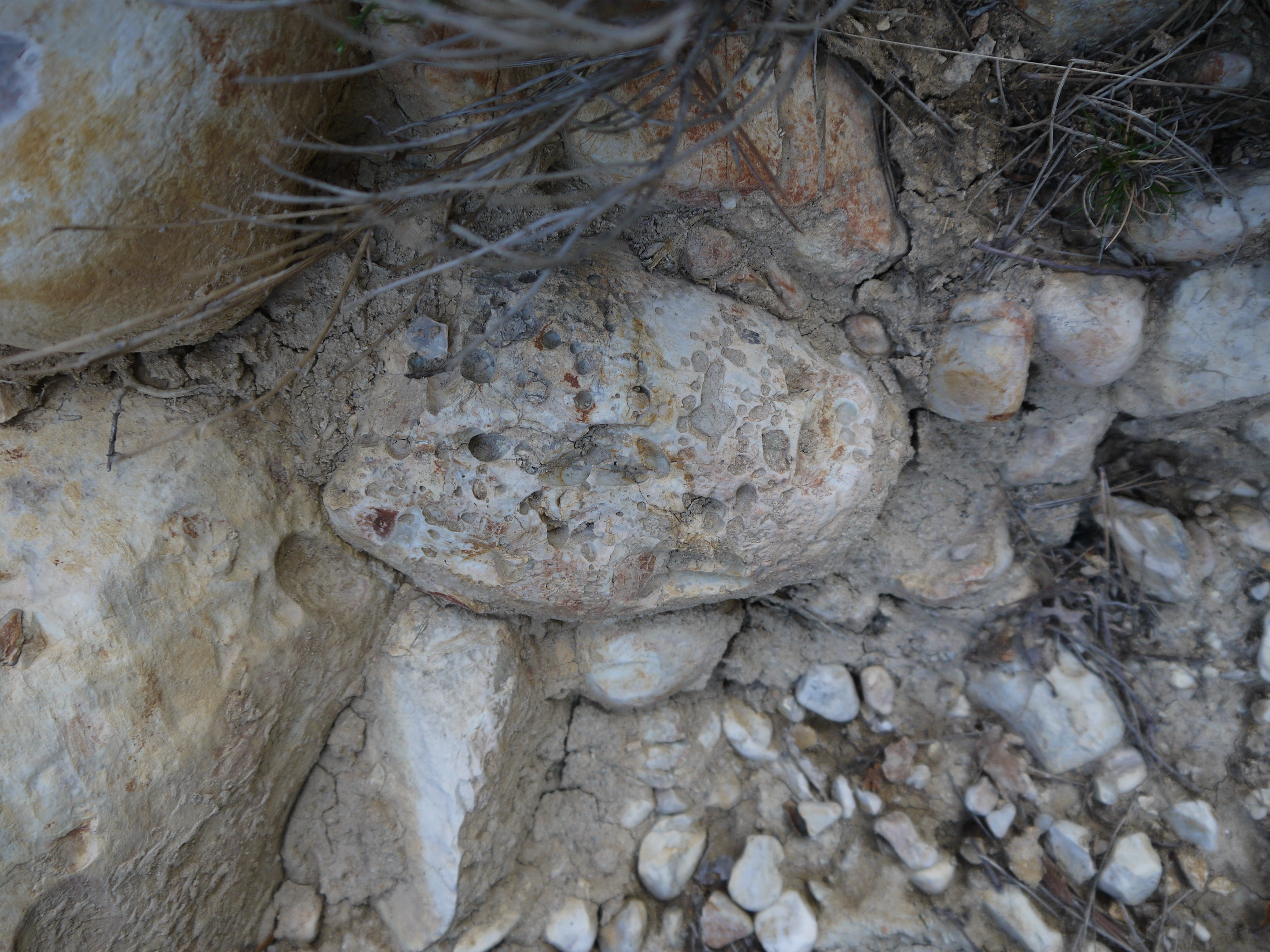 un rostre de bélemnites, des nodules, des blocs, des morceaux de lamellibranches (pectinida), des coraux, et sur la dernière y a même du sable. Toutes ces photos de détails ne montrent pas de stratification claire.