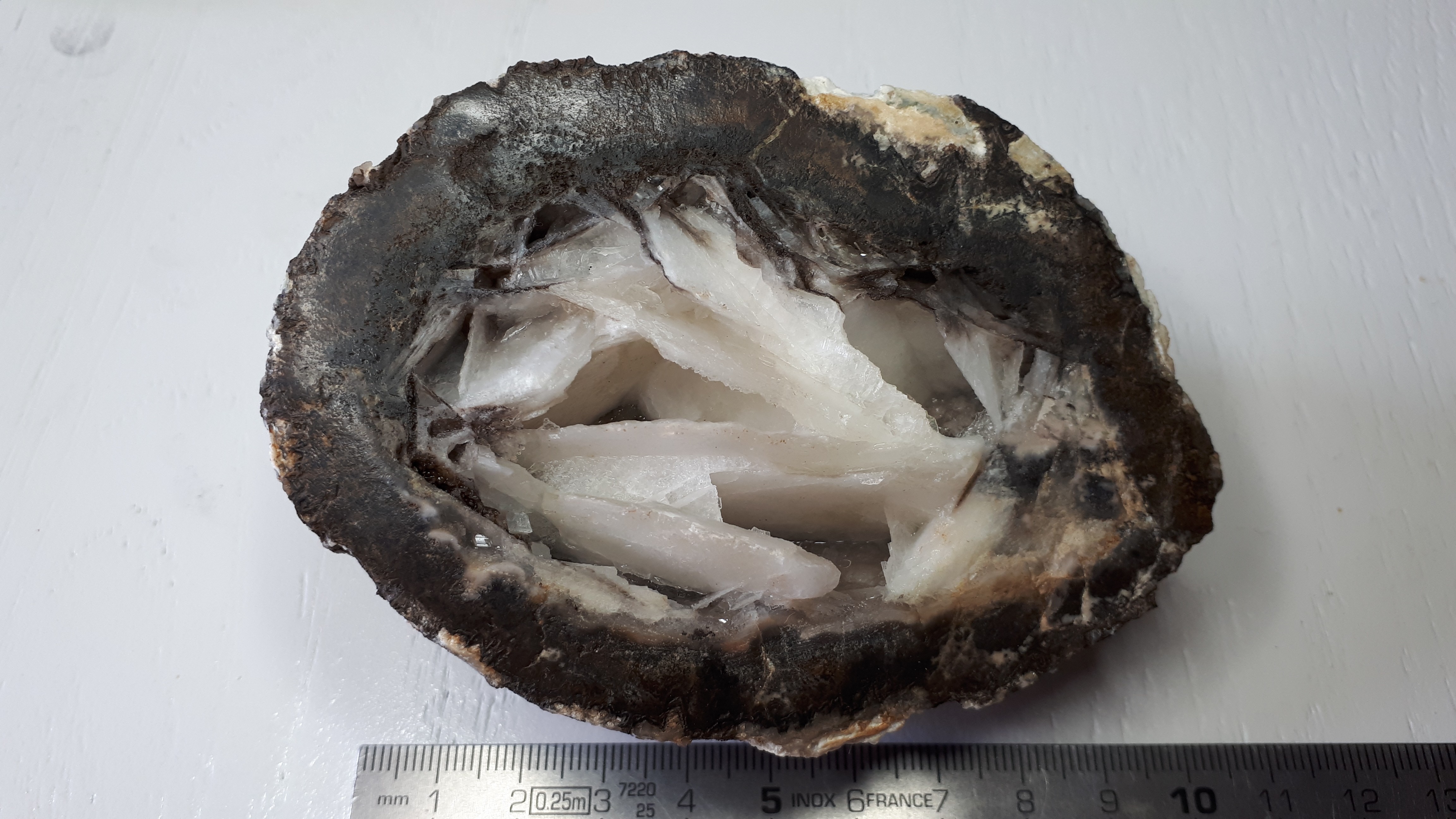 Typique géode "Coconut" ici présentant des lamelles de Calcite.